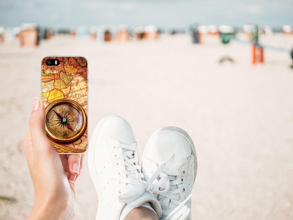 Met deze Apple iPhone SE | 5S Siliconen Back Cover met opdruk van een Kompas kun jij veilig elke richting op die je wilt, zonder dat je smartphone schade oploopt. Erg handig. Een kompas werkt overigens met magnetisme. Dat betekent dat een kompas af gaat wijken als die te dicht in de buurt van metaal of een andere magnetische bron komt. Deze tpu case met kompas heeft geen magneet omdat alleen de achterkant en zijkanten maximaal worden beschermd. Onze tpu cases met het beeld van een kompas bieden zeer goede bescherming en zijn heel praktisch, wat blijkt uit onder meer uit de flexibiliteit. Het kompas komt op de bovenkant van de case te staan, de zijkanten blijven transparant. Op deze tpu case kun je trouwens ook in no time zelf foto’s en teksten zetten. Ontwerp bijvoorbeeld eens een hoesje met je eigen vakantiefoto’s.