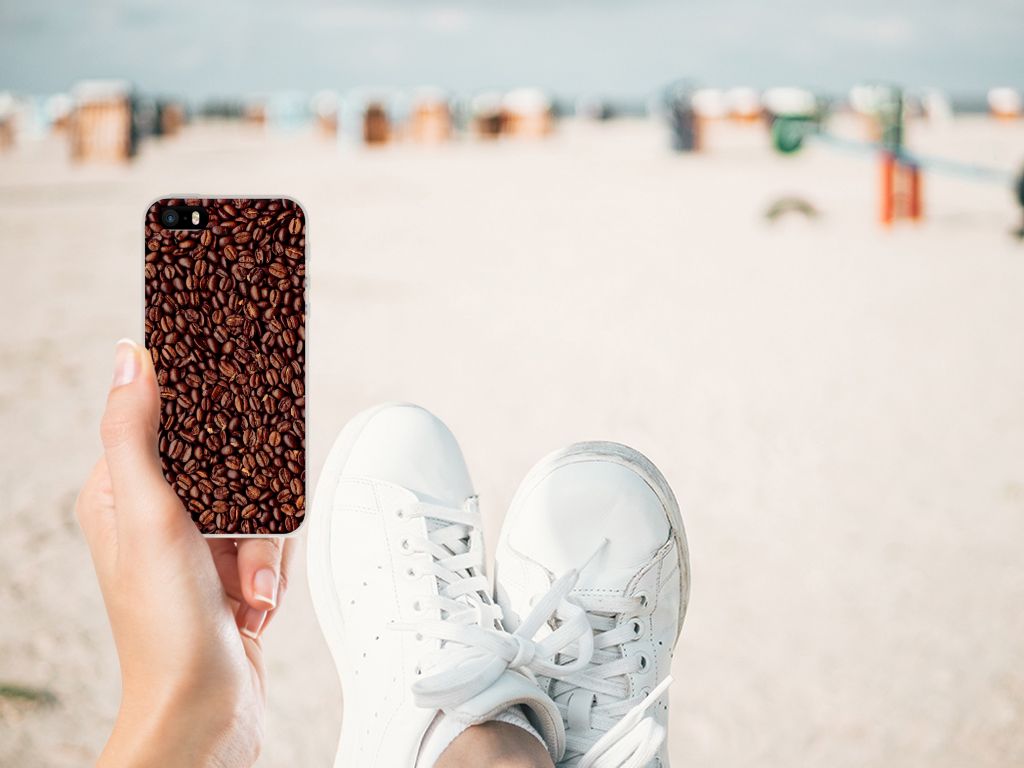 Als je de lekkerste koffie wilt dan kun je beste koffiebonen kopen. Koffie is namelijk het verst wanneer je de bonen zelf maalt. En wie houdt nou niet van de geur van vers gemaalde koffie? Daarom hebben wij de mooiste Koffiebonen op een smartphone hoesje gezet. Ben je barista, dan is dit het perfecte hoesje voor jouw werktelefoon. De koffiebonen staan op een tpu case. Dit is een zeer flexibel hoesje, dat altijd en overal in je broekzak past. Alleen de bovenkant van dit hoesje wordt door ons bedrukt, op zeer duurzame manier. Mensen die houden van een stevige espresso, kiezen voor dit degelijke design hoesje met bonen. Er staan geen bonen op de zijkanten van een Apple iPhone SE | 5S Siliconen Case. Wel kun je zelf een eigen tekst toevoegen aan het design. Hoe mooi is dat?