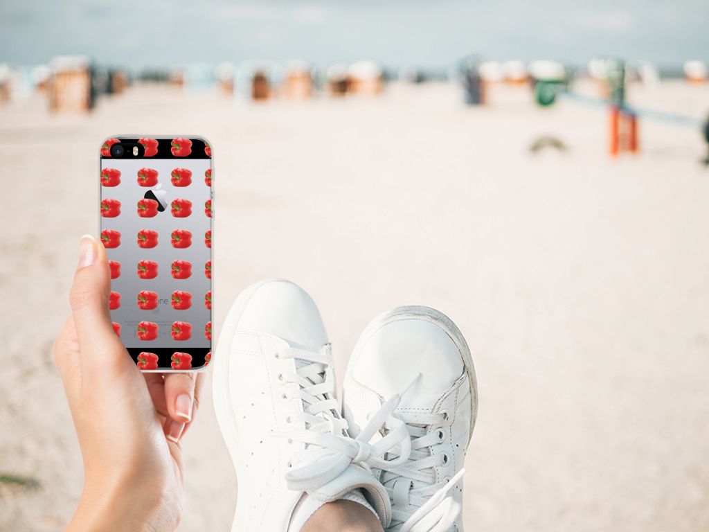 Er zit pit in jouw Apple iPhone SE | 5S Siliconen Case dankzij dit design met rode paprika’s. Paprika’s zijn er in allerlei kleuren en vormen en ze hebben gemeen dat ze heel erg gezond zijn. De rode paprika’s op deze case staan op een grijs met witte geblokte achtergrond en vormen een opvallende verschijning. Heb jij ooit iemand in je nabije omgeving rond zien lopen met een design hoesje met rode paprika’s? Waarschijnlijk niet. Dit hoesje wordt alleen aan de bovenkant bedrukt met paprika’s en is zeer flexibel. De randen van het hoesje blijven transparant en worden niet bedrukt. Met dit hoesje past jouw telefoon altijd in je broekzak. Zeker weten dat je met dit hoesje met rode paprika’s een smartphone accessoire te pakken hebt waarmee je jezelf in de schijnwerpers zet. Als je andere kleuren paprika’s op je hoesje wilt, raden we je aan ons assortiment design hoesjes te bekijken of zelf een hoesje te ontwerpen.