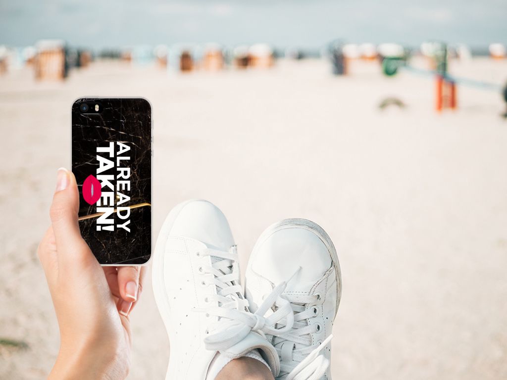 Met deze Apple iPhone SE | 5S Siliconen hoesje met naam met Already Taken Black tekst maak je duidelijk dat jouw smartphone een kostbaar bezit is, waar je zeer lang over wilt beschikken. Je telefoon neem je waarschijnlijk vaak ter hand, dus dan zal de boodschap als je over dit hoesje beschikt zeker weten overkomen. De TPU case wordt alleen aan de bovenkant bedrukt en is zeer flexibel. De randen van het hoesje blijven transparant. Wil je een eigen tekst op je hoesje zetten? Dit kan ook, met onze Phone Case Designer. Deze unieke ontwerpmodule is ook geschikt om het design uit te breiden met foto’s, effecten en patronen.