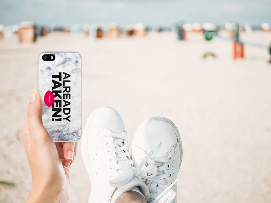 Stel dat je opdringende vrouwen of mannen van je af wil schudden op het moment dat je aan het feesten bent, omdat je al een partner hebt. Dan kun je dat met dit hoesje uitstekend duidelijk maken. Je Apple iPhone SE | 5S neem je waarschijnlijk vaak ter hand, dus dan zal de boodschap als je over dit hoesje beschikt zeker weten overkomen. Ook in het openbaar vervoer zal dit hoesje ervoor zorgen dat je minder snel versierd wordt door het andere geslacht. Als je vrijgezel bent en op zoek naar gezelschap, dan kun je beter kiezen voor een ander hoesje uit ons ruime en gevarieerde assortiment. Het design Already Taken White staat op een Siliconen hoesje met naam. Dit hoesje wordt alleen aan de bovenkant bedrukt en is zeer flexibel. De randen van het hoesje blijven transparant.