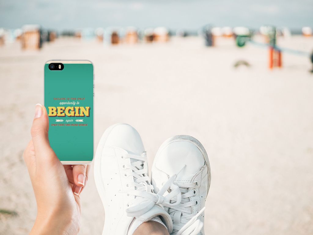 Ben je op zoek naar een uniek telefoonhoesje voor je Apple iPhone SE | 5S? Dan ben je bij B2C Telecom aan het juiste adres! Speciaal voor jou hebben we dit prachtige Quote Begin design in onze collectie hoesjes opgenomen. Het design wordt bedrukt op een Siliconen hoesje met naam en is gemaakt van flexibel rubber. Het design wordt alleen aan de bovenkant van het hoesje bedrukt en de randen blijven transparant. Aan de zijkanten zijn uitsparingen gemaakt waardoor je met gemak alle knoppen en poorten kunt bedienen. Wij adviseren om dit hoesje in combinatie met een screenprotector te gebruiken voor een langere levensduur van je telefoon. Wil je dit design hoesje nog iets extra's geven? Voeg dan gratis je naam of een quote toe! Is dit design hoesje toch niet helemaal wat je zocht? Ontwerp dan zelf een hoesje in ons ontwerpprogramma.