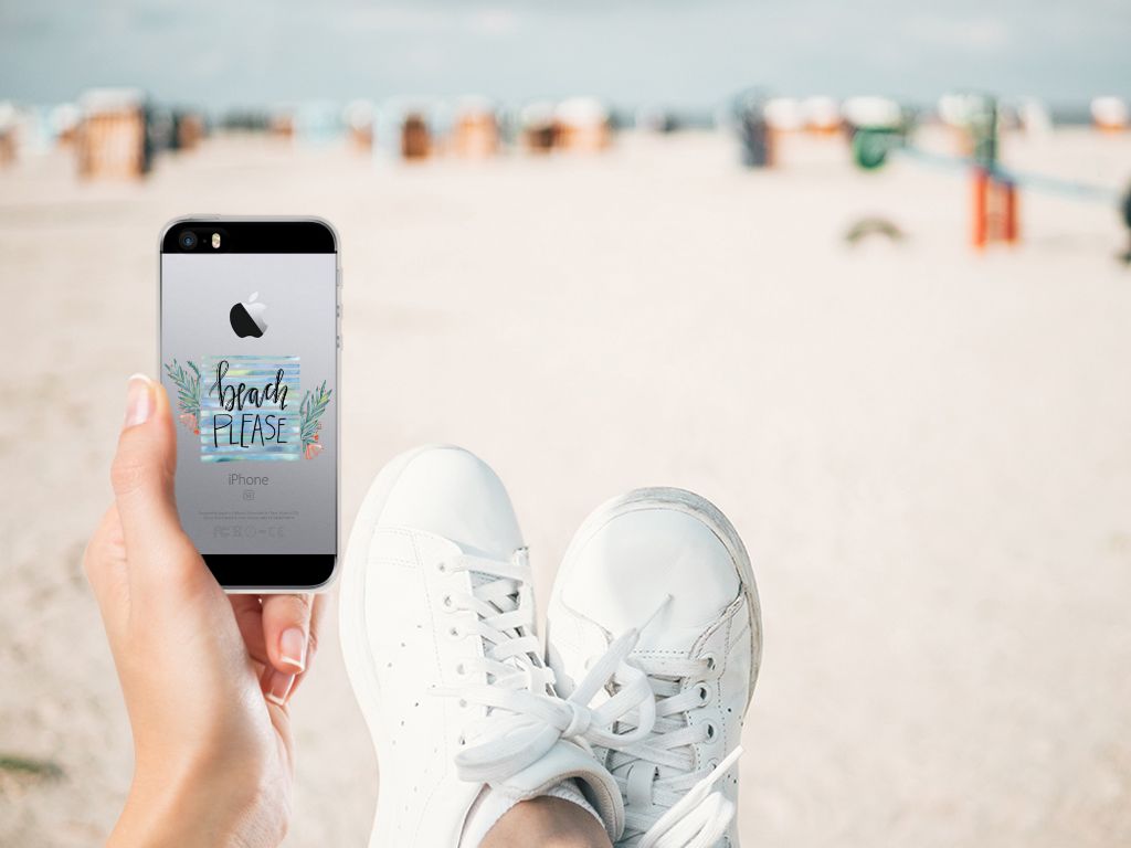 Dit design is perfect voor iedereen die geen genoeg kan krijgen van zon, zee en strand. Met dit Telefoonhoesje met Naam voor de Apple iPhone SE | 5S draag je de zomer altijd een beetje bij je. Dankzij de tekst ‘Beach Please’ ziet iedereen dat je een echte zonaanbidder bent. Het boho beach-ontwerp is vrolijk dankzij de subtiele bloemen en de leuke kleurtjes. TPU is flexibel en heel erg sterk. Zo is je telefoon aan de achterkant en de randen heel goed beschermd. De case is aan de bovenkant bedrukt, de randen blijven transparant. Het TPU-hoesje is perfect te combineren met een screenprotector, zo zijn je telefoon en je beeldscherm altijd goed beschermd.
