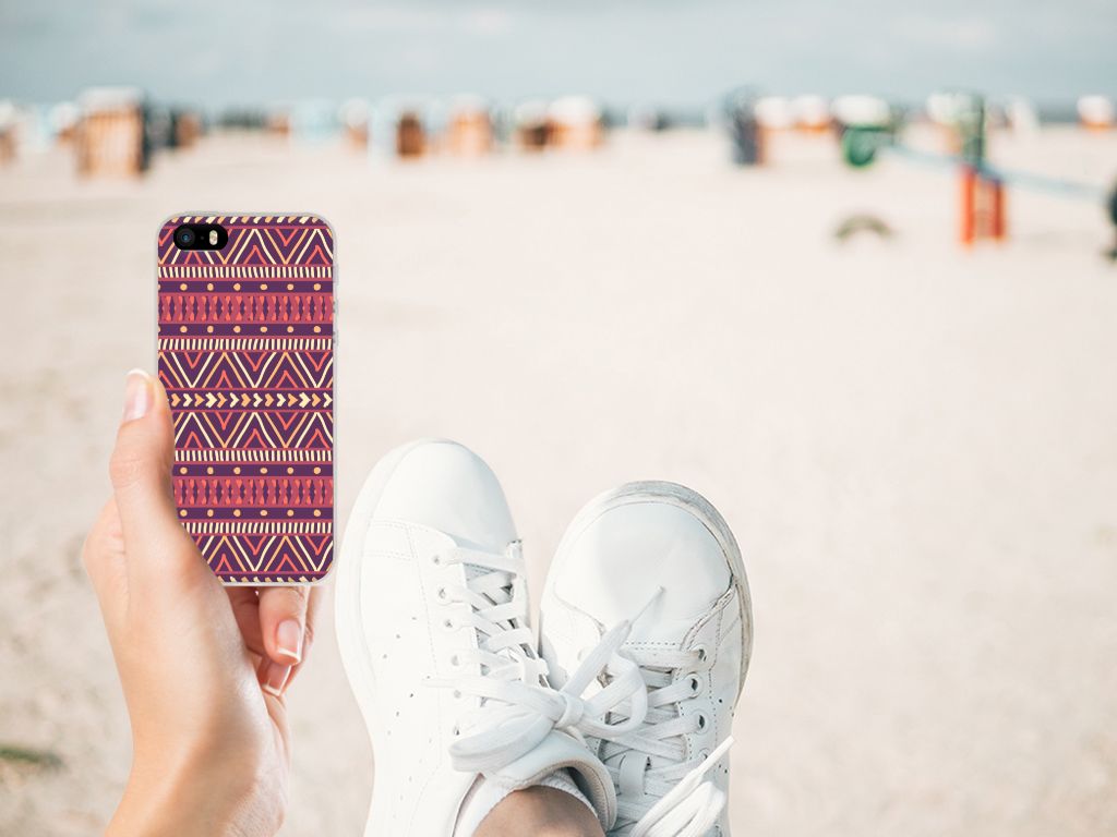 De Azteken leefden tussen 1200 en 1521 in het huidige Mexico. De mooie Aztec-patronen waar zij bekend om stonden, zien we nu nog op kleding, stoffen en tassen. Wie had toen kunnen bedenken dat we diezelfde prints honderden jaren later zelfs op een telefoonhoesje zouden vinden? Dit kleurrijke Aztec Purple-hoesje is perfect voor iedereen die een stukje geschiedenis bij zich wil dragen maar ook gewoon een mooi patroon op zijn hoesje wil. Dit vrolijke, kleurrijke ontwerp staat op een TPU bumper voor de Apple iPhone SE | 5S. TPU is flexibel en onbreekbaar. Zo is je telefoon aan de achterkant en de randen heel goed beschermd. De case is aan de bovenkant bedrukt, de randen blijven transparant.