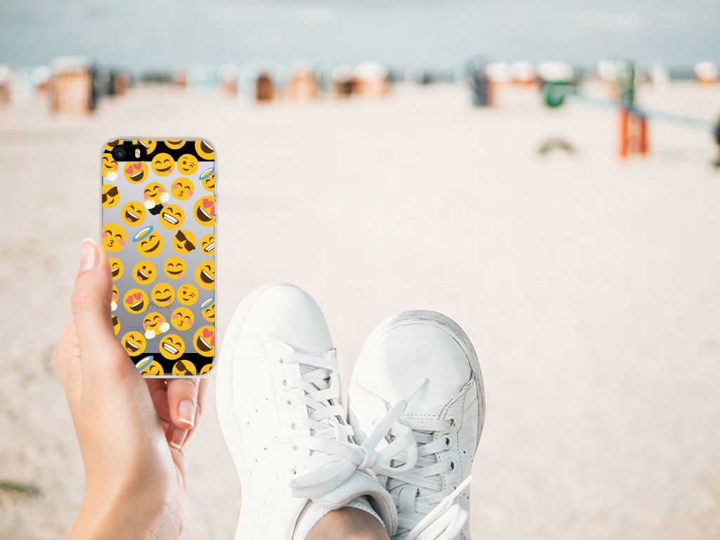 Je gebruikt ze waarschijnlijk dagelijks: emoji’s. Daarom hebben we besloten ze op een design hoesje te zetten. De kleurrijke, vaak gele emoticons maken chatberichten net wat spontaner. Dat hebben we allemaal te danken aan Japan, waar de emoji’s die we zo goed kennen vandaan komen. Ondertussen zijn er meer dan 1800! Deze passen natuurlijk niet allemaal op een Apple iPhone SE | 5S TPU bumper, maar we hebben de meeste gebruikte exemplaren erop gezet. Deze tpu case is voorzien van opstaande randen zodat het touchscreen van je telefoon beter is beschermd. Super handig. Het TPU zelf is zeer flexibel en is op maat gemaakt. We gebruiken emoji’s vaak om complete woorden te vervangen. Dit smartphone hoesje zegt dan ook meer dan duizend woorden kunnen. De tpu case wordt alleen aan de bovenzijde bedrukt met emoji’s. De zijkanten van de case worden niet bedrukt en blijven transparant.