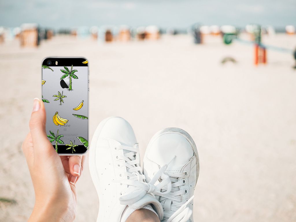 Heb jij al zin om op vakantie te gaan? Dat krijg je hoe dan ook als je één blik werpt op dit vrolijke hoesje voor je Apple iPhone SE | 5S met Banana Tree design. Het fleurige tafereel van bananenbomen, bananenbladeren en bananen doet je gedachten afdwalen naar paradijselijke bountystranden met azuurblauwe zee en helderwitte zandpartijen. Kortom: dit hoesje is goed voor je humeur. Naast het luchtige design zijn daar nog meer redenen voor, want dankzij de stevige materialen weet je zeker dat dit TPU Case je telefoon altijd optimaal beschermt Dit hoesje wordt alleen aan de bovenkant bedrukt en is zeer flexibel. De randen van het hoesje blijven transparant. Met dit hoesje breng je jezelf in zomerse sferen en gun je jezelf een krasvrije telefoon.