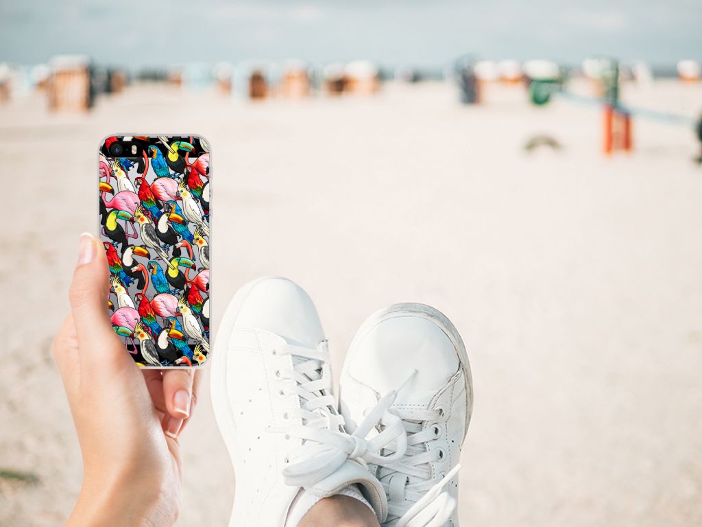 Dit exotische hoesje vol prachtige vogels is een genot voor het oog. Dankzij de felgekleurde toekans, papegaaien, flamingo’s en kaketoes op dit design word je meteen vrolijk als je naar dit hoesje kijkt. Je waant je meteen in de tropen met dit bonte gezelschap tegen een witte achtergrond. Het ontwerp staat op een TPU Hoesje voor de Apple iPhone SE | 5S. TPU is een flexibel en onbreekbaar materiaal. Zo is je telefoon aan de achterkant en de randen heel goed beschermd. De case met het birds-design is aan de bovenkant bedrukt, de randen blijven transparant. Het TPU-hoesje is perfect te combineren met een screenprotector. Zo zijn je telefoon en je beeldscherm optimaal beschermd.
