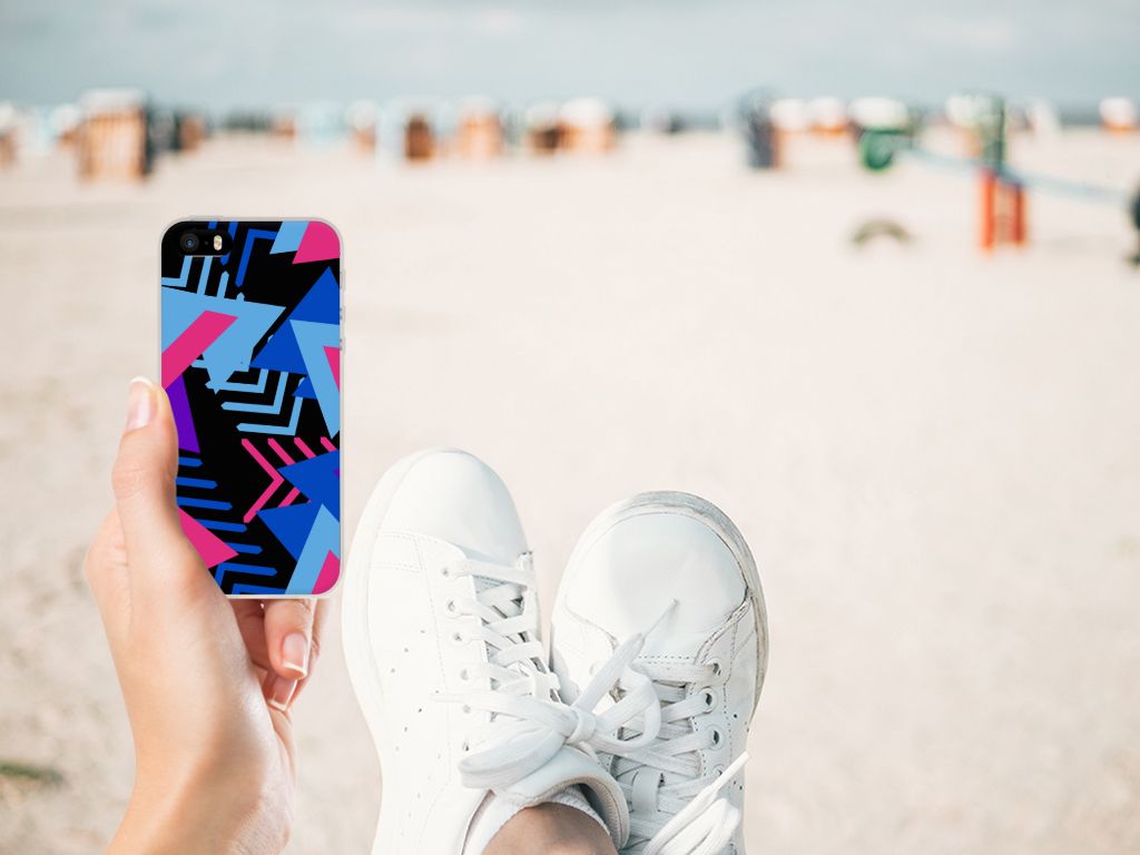 Dit fraaie hoesje met het design Funky Triangle is alles behalve eenvoudig en sober. Dat komt goed uit, want je hebt natuurlijk ook geen doorsnee telefoon gekocht. Mocht je dat wel hebben gedaan, dan wordt hij meteen speciaal als je een Apple iPhone SE | 5S TPU Hoesje koopt voor een spotprijsje. Een ding is zeker: opvallen ga je beslist met dit hoesje met paarse, roze en blauwe driehoeken. Jij zult in je element zijn met dit design hoesje met paarse, roze en blauwe driehoeken, omdat het er schitterend uitziet en jouw telefoon zeer goed beschermt. Het smartphonehoesje beschermt jouw telefoon vooral aan de zijkanten en achterkant en wordt alleen aan de bovenzijde bedrukt met paarse, roze en blauwe driehoeken. De zijkanten blijven doorzichtig. De paarse, roze en blauwe driehoeken maken de case helemaal af.