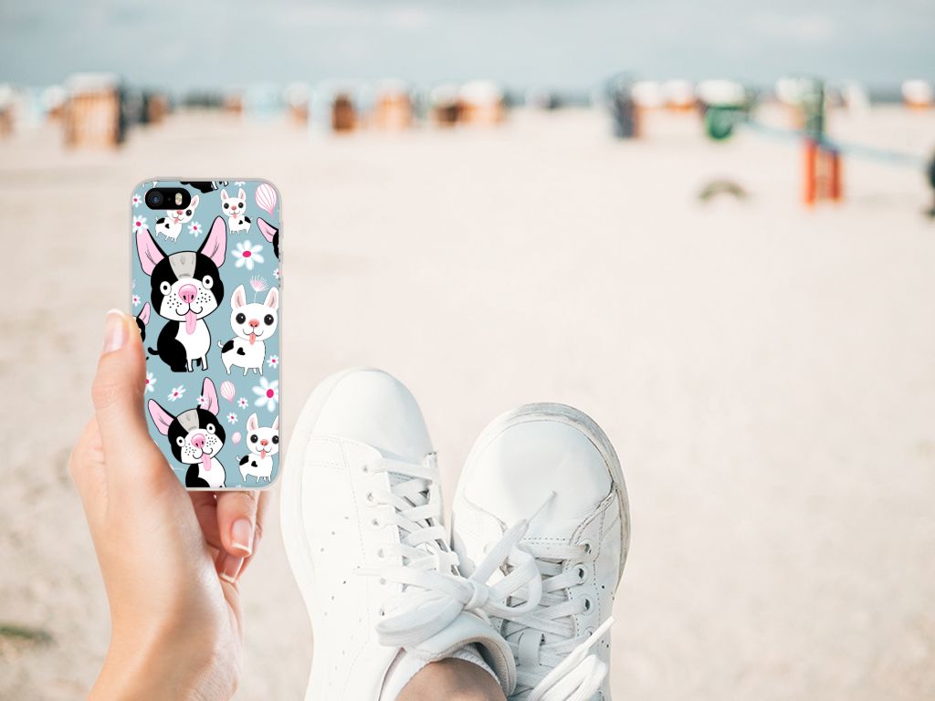 De Hondjes op deze Apple iPhone SE | 5S TPU Hoesje ogen zeer aandoenlijk. Deze hondjes met zwart-witte vacht willen jou zelfs bijna in je armen springen, zo blij zijn ze dat ze op dit design zijn gezet. Het tpu hoesje is een zeer flexibele smartphone case. Dit hoesje met zwarte en witte hondjes is niet alleen zeer praktisch vanwege de opstaande randen aan de voorzijde, maar beschermt je smartphone ook nog eens zeer goed. Op de bovenkant van de tpu case, die altijd in je broekzak past, staan de vrolijke hondjes. Veel Nederlanders hebben momenteel een hond als huisdier. Honden zijn dus erg populair. Net als deze tpu case, die wel eens het ideale cadeautje zou kunnen zijn voor jouw vriendin of dochter. De case blijft aan de zijkanten doorzichtig.