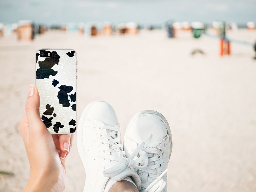 De vlekken op de huid van een koe hebben een camouflage functie. Met deze Apple iPhone SE | 5S TPU Hoesje met Koeienvlekken hoef je je geen zorgen te maken dat je smartphone schade oploopt. De koeienvlekken zetten we op een tpu case op het moment dat jij je bestelling plaatst. Hierdoor krijgt jouw telefoon een print van koeienvlekken van zeer hoge kwaliteit. Ook omdat we het bedrukken van deze case geheel zelf doen. Jouw telefoon is vooral aan de achterkant en zijkanten goed beschermd. De print van koeienvlekken komt op de bovenkant van het hoesje te staan, de randen blijven doorzichtig. Roofdieren zijn niet geïnteresseerd in koeien dankzij de vlekken op hun huid. Deze beschermende werking heeft ook jouw hoesje met koeienprint.