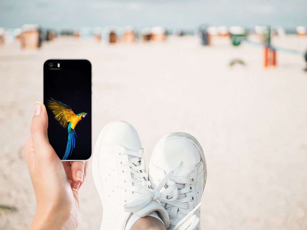 Dit design hoesje met Papegaai tegen een zwarte achtergrond is een zeer flexibele bescherming voor jouw smartphone. Dit komt vooral omdat deze print op een tpu case staat. Dit is een zeer buigzaam hoesje, dat de telefoon vooral aan de achterkant en zijkanten beschermt. De bovenkant van de Apple iPhone SE | 5S TPU Hoesje wordt bedrukt met deze schitterende print. De zijkanten blijven doorzichtig. Papegaaien zijn erg sociale vogels die voldoende aandacht en gezelschap nodig hebben. Als je er voor kiest om een papegaai aan te schaffen, is het een goed idee om een koppeltje te nemen. Koop je meerdere tpu cases met een papegaai, dan ga je automatisch minder betalen per hoesje. Wij hanteren een systeem van bundelkorting. Dus koop dit hoesje met opstaande randen voor een spotprijs.