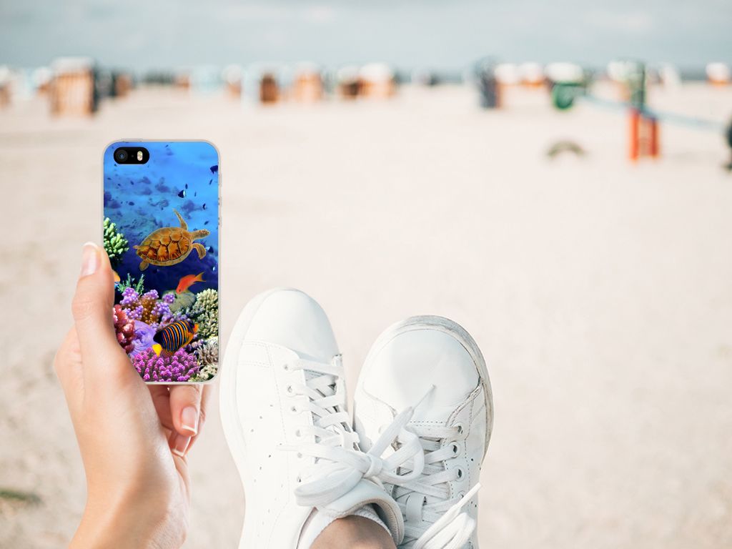 Dit kleurrijke hoesje met tropische Vissen is een ware eyecatcher. Als je aan het duiken bent en je treft een school aan met dit soort opvallende vissen, dan heb je een geweldige ervaring. Maar je hoeft er eigenlijk niet per se het water voor in te duiken. Want wij hebben een schitterende verzameling vissen op dit design hoesje gezet. Met onze zeer geavanceerde printer zetten we de afbeelding van vissen op de bovenkant van de Apple iPhone SE | 5S TPU Hoesje, de randen blijven transparant. De case is gemaakt van zeer elastisch en onbreekbaar materiaal. Verder is je telefoon natuurlijk goed beschermd met deze tpu case met print van vissen. Deze case heeft tevens opstaande randen, waardoor je scherm de grond niet zal raken als de smartphone uit je handen valt.