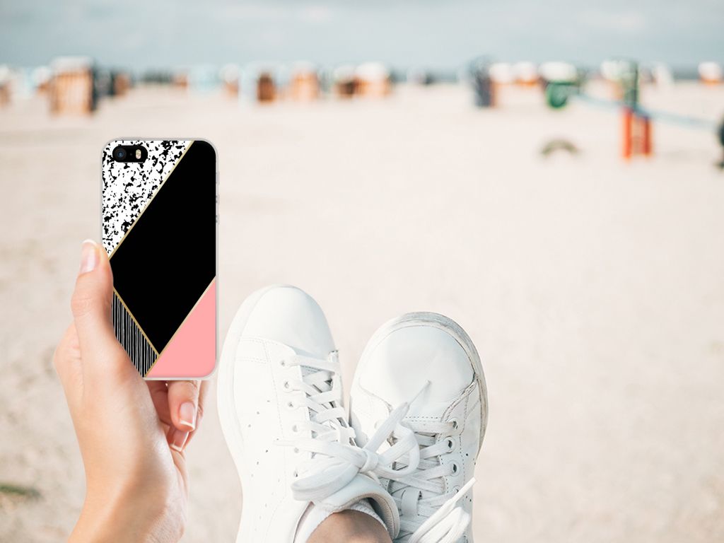 TPU Hoesje Apple iPhone SE | 5S Zwart Roze Vormen Design
