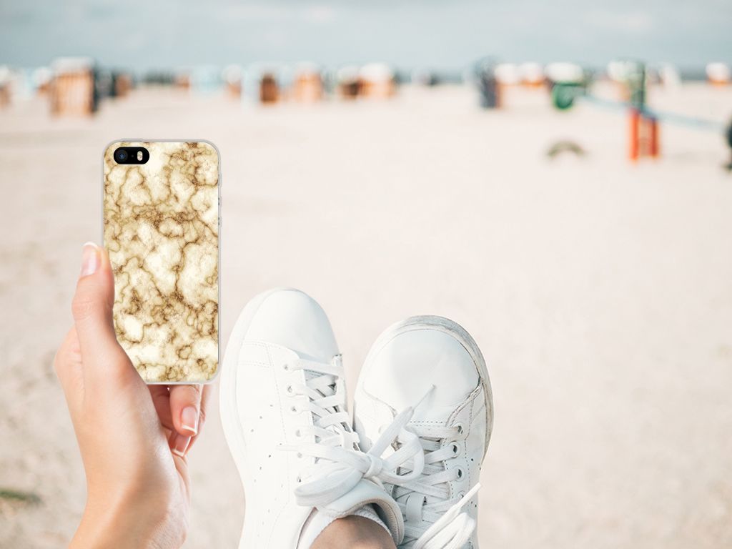 Deze Apple iPhone SE | 5S TPU Siliconen Hoesje met Marmer Goud is het waard om een blokje voor om te rijden. Dit is overigens niet nodig. Als je het hoesje met goud marmer nu bestelt heb je het zeer snel in huis. Je kunt er bij wijze van spreken thuis op gaan zitten wachten. Je hebt diverse soorten marmer. We hebben enkele fraaie kleuren op onze hoesjes gezet, zoals in dit geval het gouden marmer. Het goud marmer wordt bedrukt op de achterkant van de tpu case, die beschikt over alle nodige uitsparingen waardoor je alle knoppen en poorten van je smartphone kunt bedienen. Verder is de case met goud marmer gemaakt van zeer flexibel materiaal. De rijkheid aan kleuren en varianties in afwerking is een schitterende eigenschap van marmer. Dit tpu hoesje met goud marmer heeft ook veel schitterende eigenschappen en is de ideale bescherming voor jouw smartphone.