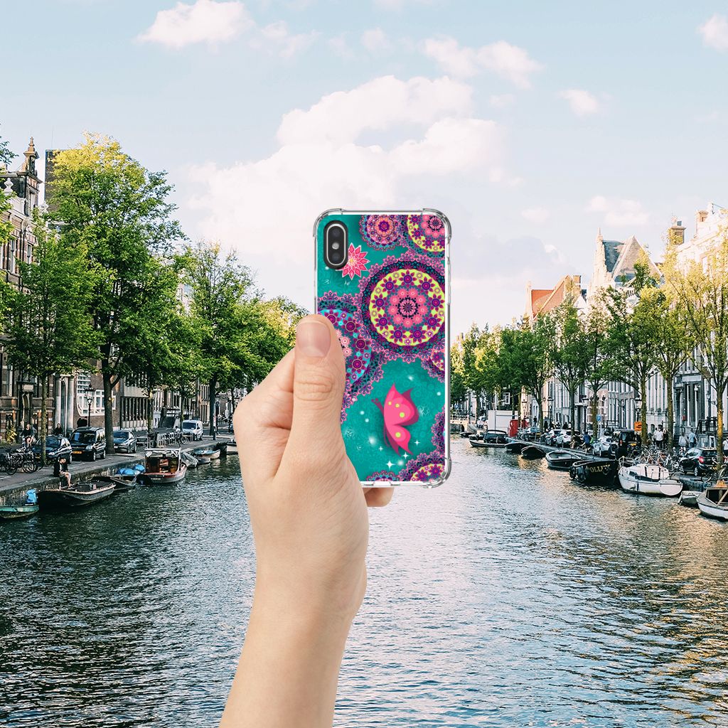 Ben je op zoek naar een uniek telefoonhoesje voor je Apple iPhone X | Xs? Dan ben je bij B2C Telecom aan het juiste adres! Speciaal voor jou hebben we dit prachtige Cirkels en Vlinders design in onze collectie hoesjes opgenomen. Het design wordt bedrukt op een Back Cover en is gemaakt van flexibel rubber. Het hoesje is perfect voor de actieve smartphonegebruiker door de opstaande randen/hoeken. Denk aan mensen die veel sporten, reizen of wandelen en net iets meer zekerheid willen als het op hun geliefde telefoon aankomt. Het design wordt alleen aan de bovenkant van het hoesje bedrukt en de randen blijven transparant. Aan de zijkanten zijn uitsparingen gemaakt waardoor je met gemak alle knoppen en poorten kunt bedienen. Wij adviseren om dit hoesje in combinatie met een screenprotector te gebruiken voor een langere levensduur van je telefoon. Wil je dit hoesje nog iets extra's geven? Voeg dan gratis je naam of een quote toe! Is dit design hoesje toch niet helemaal wat je zocht? Ontwerp dan zelf een hoesje in ons ontwerpprogramma.