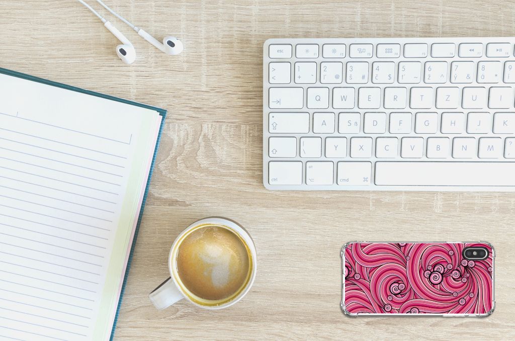 Ben je op zoek naar een uniek telefoonhoesje voor je Apple iPhone X | Xs? Dan ben je bij B2C Telecom aan het juiste adres! Speciaal voor jou hebben we dit prachtige Swirl Pink design in onze collectie hoesjes opgenomen. Het design wordt bedrukt op een Back Cover en is gemaakt van flexibel rubber. Het hoesje is perfect voor de actieve smartphonegebruiker door de opstaande randen/hoeken. Denk aan mensen die veel sporten, reizen of wandelen en net iets meer zekerheid willen als het op hun geliefde telefoon aankomt. Het design wordt alleen aan de bovenkant van het hoesje bedrukt en de randen blijven transparant. Aan de zijkanten zijn uitsparingen gemaakt waardoor je met gemak alle knoppen en poorten kunt bedienen. Wij adviseren om dit hoesje in combinatie met een screenprotector te gebruiken voor een langere levensduur van je telefoon. Wil je dit hoesje nog iets extra's geven? Voeg dan gratis je naam of een quote toe! Is dit design hoesje toch niet helemaal wat je zocht? Ontwerp dan zelf een hoesje in ons ontwerpprogramma.