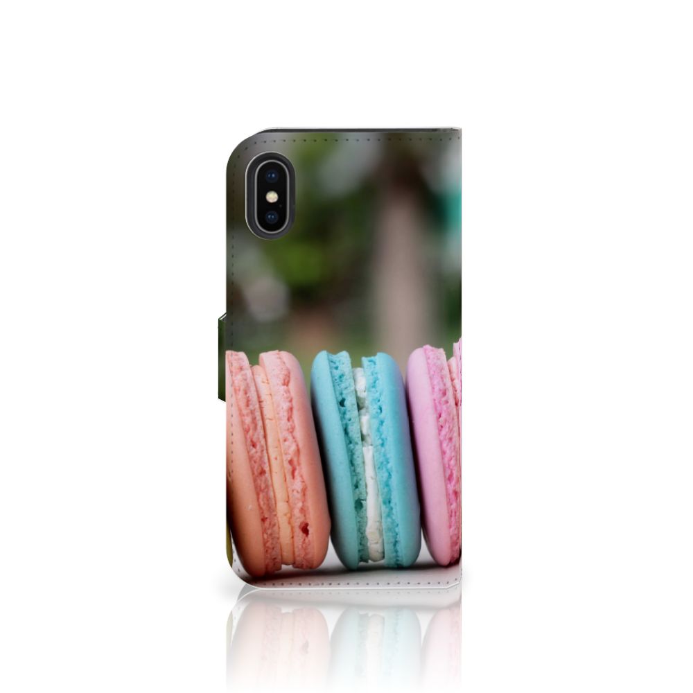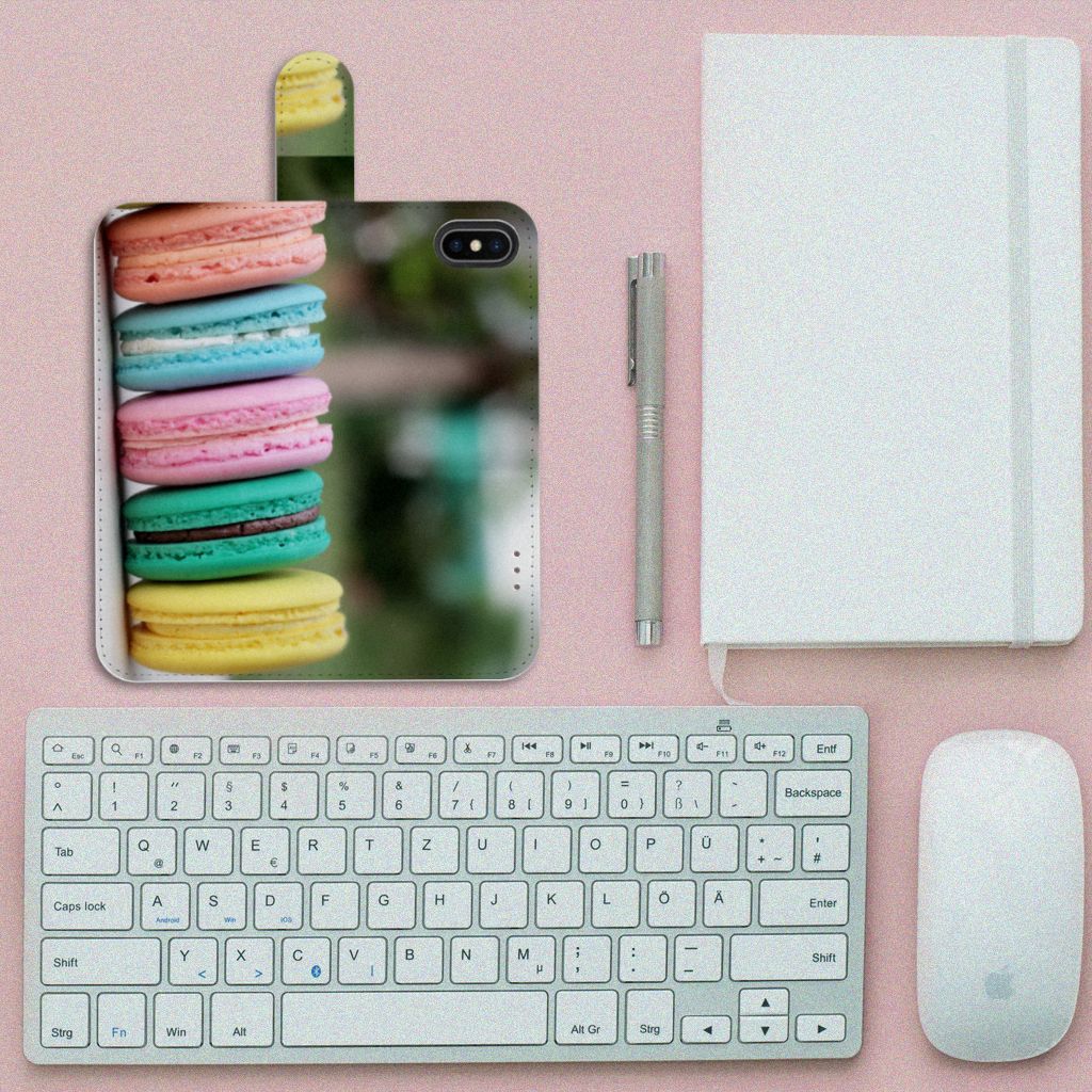 Dit hoesje met macarons is een zeer opvallende bescherming voor jouw smartphone. Macarons zijn Franse koekjes: kleine, rond en luchtig. Ze zijn aan elkaar geplakt met een zachte vulling. Ze worden in veel verschillende smaken gemaakt, herkenbaar aan de verschillende kleuren zoals chocolade (donkerbruin), mokka (middenbruin), kersen (rood), pistache (groen), aardbei (roze), framboos (karmijn), citroen (geel) en kokos (roomwit). Deze kleuren kun je natuurlijk ook zien op dit fraaie design hoesje met macarons. Heb je altijd al een Apple iPhone X | Xs Book Cover willen hebben met macarons? Grijp dan nu je kans. Een boekhoesje heeft zeer veel goede eigenschappen, zoals opbergvakjes aan de binnenkant en een magnetische sluiting in de vorm van een lipje aan de buitenzijde. Dit design hoesje met macarons wordt aan alle zijden bedrukt, zelfs het lipje krijgt een afbeelding van een macaron. De houder aan de binnenkant van het hoesje is van TPU.