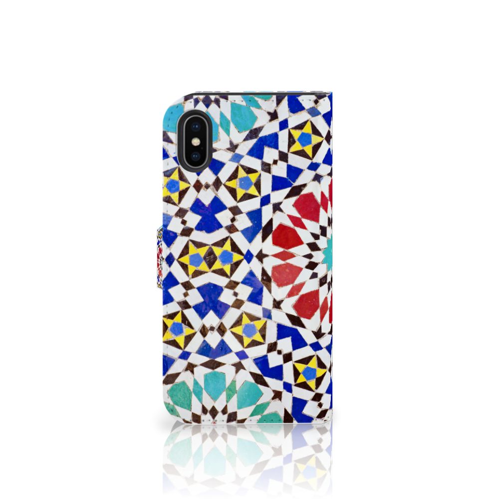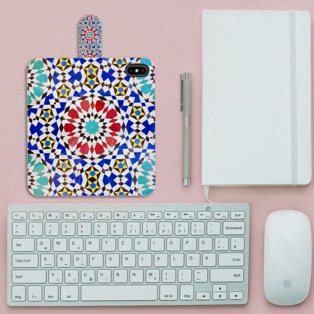 Aan design hoesjes met kunstvormen geen gebrek in onze uitgebreide collectie. Wat dacht je van dit design hoesje met Mozaïek . Dit is een kunstvorm waarbij een grote afbeelding wordt gemaakt uit een groot aantal kleine gekleurde steentjes (tesserae), die in een vloer of wand worden gemetseld. Deze gekleurde steentjes zie je terug op dit boekhoesje met design van mozaïek. Een boekhoesje is zo’n beetje de veiligste case die er bestaat. Een Apple iPhone X | Xs Bookcase met print zorgt voor een volledige bescherming van je smartphone en wordt aan alle zijden bedrukt met mozaïek. Een deel van de foto’s staat ook op het lipje aan de buitenzijde. Verder is de houder aan de binnenzijde van TPU. De Grieken en Romeinen beheersten de kunst al. Op diverse plaatsen in Europa zijn mozaïeken teruggevonden die tot op de dag van vandaag goed bewaard zijn gebleven. Met een hoesje met mozaïek blijft jouw telefoon in tact. Je pasjes en briefgeld kun je in de vakjes aan de binnenzijde stoppen