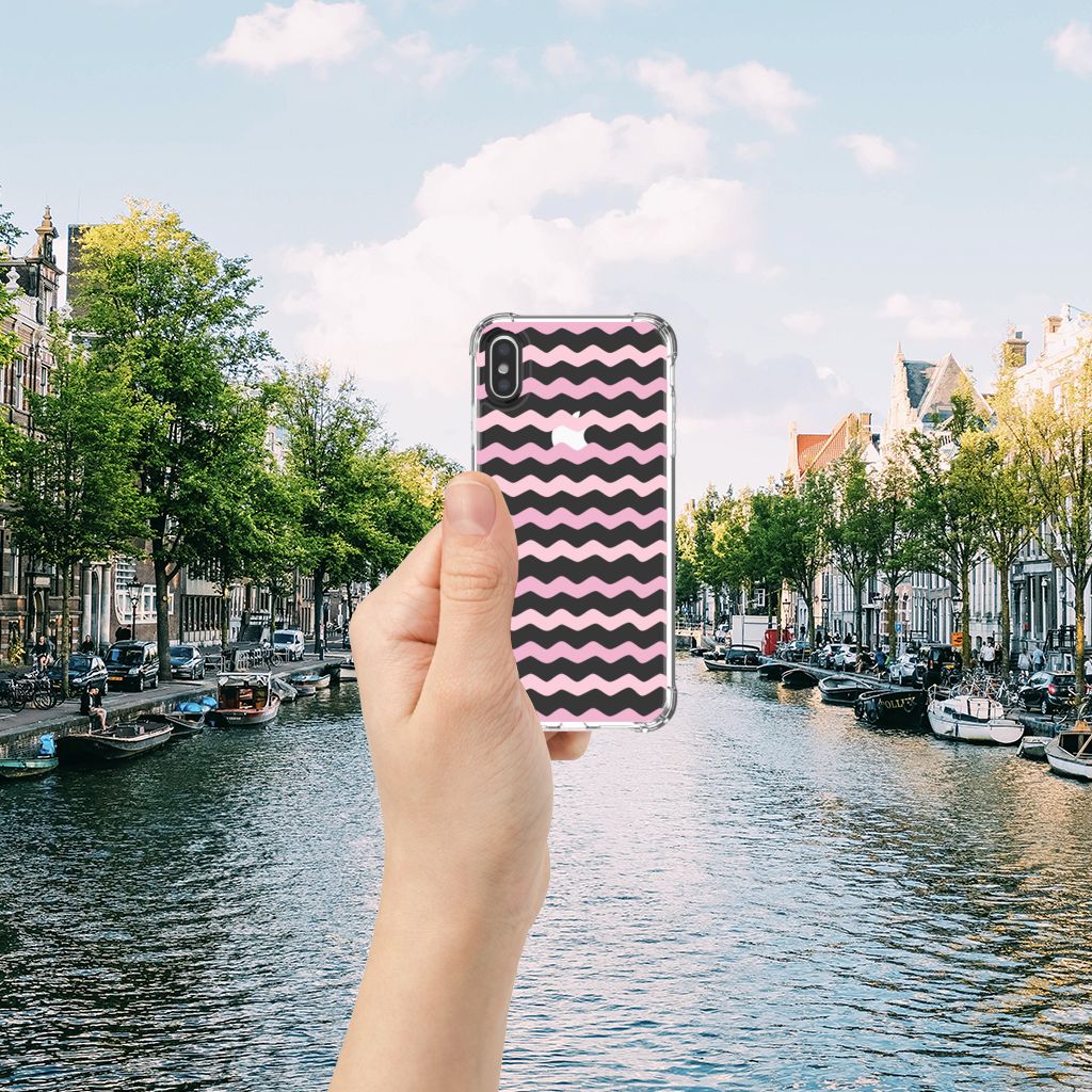 Ben je op zoek naar een uniek telefoonhoesje voor je Apple iPhone X | Xs? Dan ben je bij B2C Telecom aan het juiste adres! Speciaal voor jou hebben we dit prachtige Waves Roze design in onze collectie hoesjes opgenomen. Het design wordt bedrukt op een Doorzichtige Silicone Hoesje en is gemaakt van flexibel rubber. Het hoesje is perfect voor de actieve smartphonegebruiker door de opstaande randen/hoeken. Denk aan mensen die veel sporten, reizen of wandelen en net iets meer zekerheid willen als het op hun geliefde telefoon aankomt. Het design wordt alleen aan de bovenkant van het hoesje bedrukt en de randen blijven transparant. Aan de zijkanten zijn uitsparingen gemaakt waardoor je met gemak alle knoppen en poorten kunt bedienen. Wij adviseren om dit hoesje in combinatie met een screenprotector te gebruiken voor een langere levensduur van je telefoon. Wil je dit hoesje nog iets extra's geven? Voeg dan gratis je naam of een quote toe! Is dit design hoesje toch niet helemaal wat je zocht? Ontwerp dan zelf een hoesje in ons ontwerpprogramma.