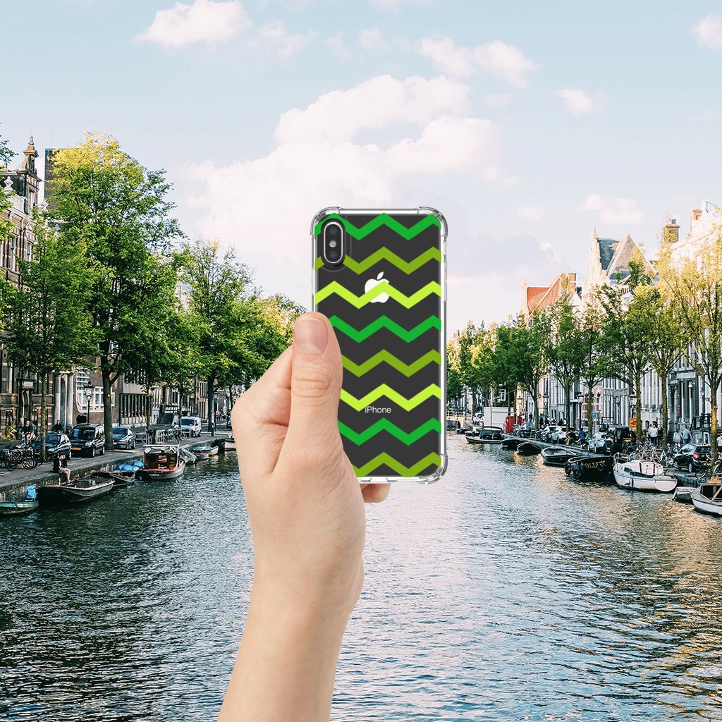 Ben je op zoek naar een uniek telefoonhoesje voor je Apple iPhone X | Xs? Dan ben je bij B2C Telecom aan het juiste adres! Speciaal voor jou hebben we dit prachtige Zigzag Groen design in onze collectie hoesjes opgenomen. Het design wordt bedrukt op een Doorzichtige Silicone Hoesje en is gemaakt van flexibel rubber. Het hoesje is perfect voor de actieve smartphonegebruiker door de opstaande randen/hoeken. Denk aan mensen die veel sporten, reizen of wandelen en net iets meer zekerheid willen als het op hun geliefde telefoon aankomt. Het design wordt alleen aan de bovenkant van het hoesje bedrukt en de randen blijven transparant. Aan de zijkanten zijn uitsparingen gemaakt waardoor je met gemak alle knoppen en poorten kunt bedienen. Wij adviseren om dit hoesje in combinatie met een screenprotector te gebruiken voor een langere levensduur van je telefoon. Wil je dit hoesje nog iets extra's geven? Voeg dan gratis je naam of een quote toe! Is dit design hoesje toch niet helemaal wat je zocht? Ontwerp dan zelf een hoesje in ons ontwerpprogramma.
