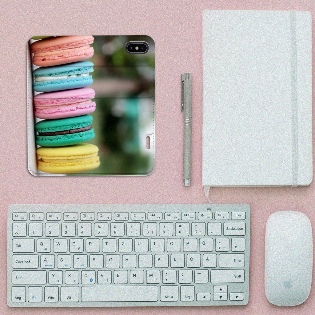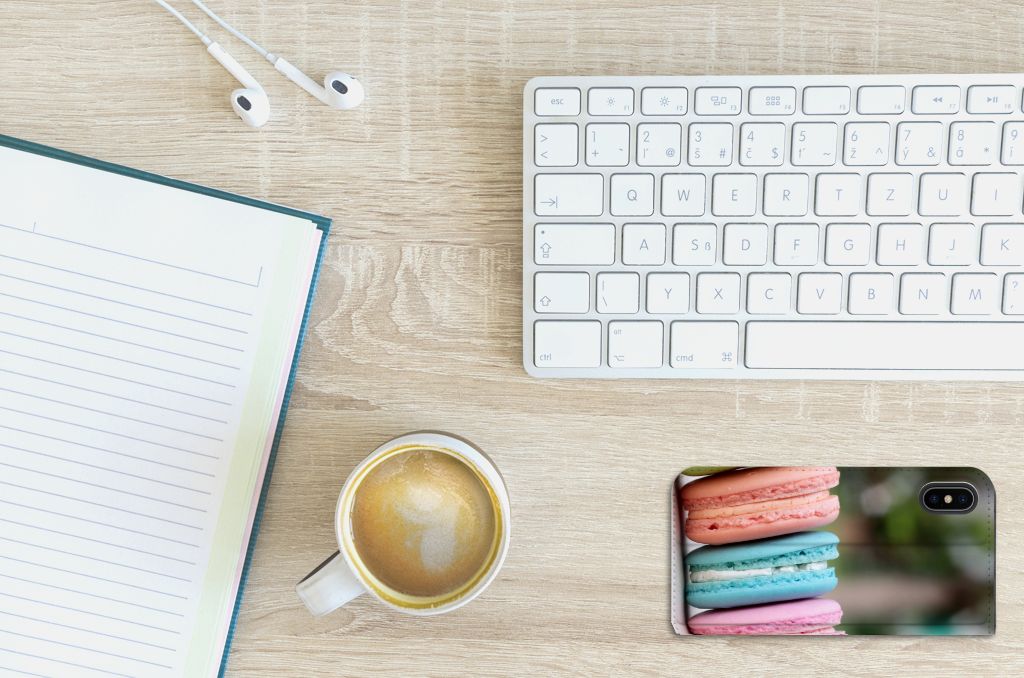 Dit stand hoesje met macarons is een zeer opvallende bescherming voor jouw smartphone. Macarons zijn Franse koekjes: kleine, rond en luchtig. Ze zijn aan elkaar geplakt met een zachte vulling. Ze worden in veel verschillende smaken gemaakt, herkenbaar aan de verschillende kleuren zoals chocolade (donkerbruin), mokka (middenbruin), kersen (rood), pistache (groen), aardbei (roze), framboos (karmijn), citroen (geel) en kokos (roomwit). Deze kleuren kun je natuurlijk ook zien op dit fraaie design hoesje met macarons. Heb je altijd al een Apple iPhone X | Xs Flip Style Cover willen hebben met macarons? Grijp dan nu je kans. Deze case heeft zeer veel goede eigenschappen, zoals 1 opbergvakje en een magnetische sluiting aan de binnenkant. Dit design hoesje met macarons wordt aan alle zijden bedrukt. De houder aan de binnenkant van het hoesje is van TPU. De case heeft ook een handige standaard.