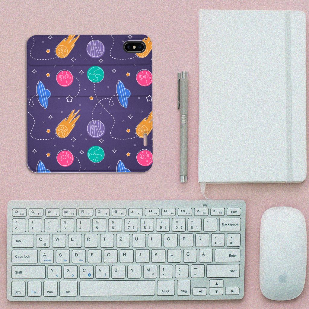 Ben je een beetje geïnteresseerd in buitenaards leven? Dan kan je wel eens enthousiast raken van deze Apple iPhone X | Xs Hippe Standcase met Space print. Dus mensen die van science fiction houden zullen deze case ongetwijfeld mooi vinden. Er zijn verschillende planeten en vliegende schotels te ontdekken in dit design hoesje. Dit kunstwerkje is voor heel weinig geld te bestellen op onze website. Je krijgt er maximale bescherming van je smartphone voor terug. De stand case beschermt jouw telefoon aan alle kanten en beschikt over een 1 opbergvakje en een speciale standaard. Het hoesje wordt afgesloten met een magneet aan de binnenzijde. De houder aan de binnenzijde is van TPU. Je zult ontdekken dat dit hele stevige telefoonhoesje een heel goede bescherming biedt tegen alle vormen van schade. Met dit hoesje hoef je niet bang te zijn dat er krassen op je design komen of scheuren in je scherm.