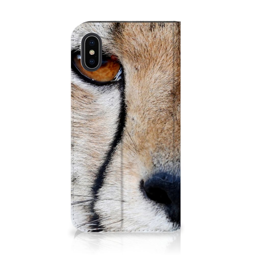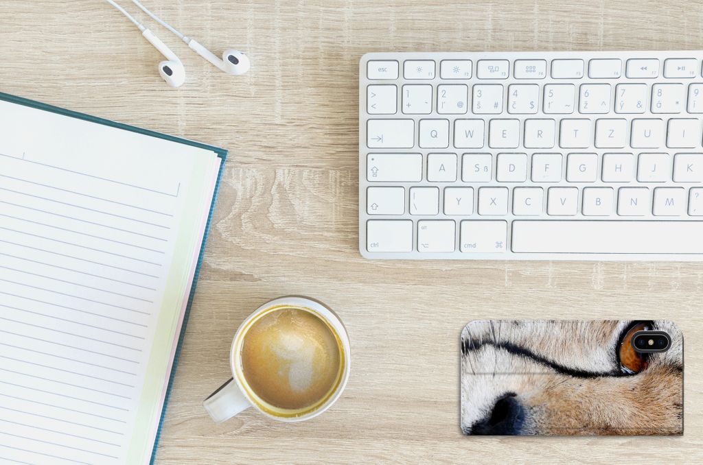 Wist je dat een cheetah, ook wel jachtluipaard genoemd, een topsnelheid van 120 km/u kan halen? Dit maakt de cheetah tot het snelste landdier ter wereld. Dit design hoesje met cheetah print kunnen we dus met recht zeer flitsend noemen. Dit komt niet alleen door de foto van het jachtluipaard, maar ook door de uitstraling van het hoesje. De close up van het dier hebben we op een stand case gezet. Dit is een multifunctionele case, met een vakje aan de binnenzijde waarin je een pasje kwijt kunt. Hiermee is de kous nog niet af, want een Apple iPhone X | Xs Hoesje maken wordt aan de binnenzijde magnetisch afgesloten en heeft een standaard. De vacht van jachtluipaarden is bedekt met ronde, zwarte vlekjes. Hierdoor valt het dier in zijn natuurlijke leefomgeving zo min mogelijk op. Jij doet dat zeker wel, met deze stand case met design. De buitenzijde is van leer, de houder aan de binnenzijde van TPU.