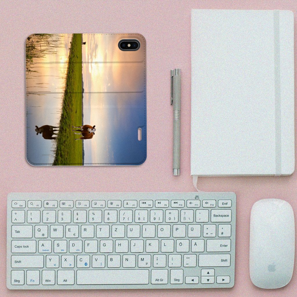 Het levert een idyllisch plaatje op, dit hoesje met een koe en ondergaande zon op de achtergrond. Door een koe buiten te laten lopen en grazen, hebben ze minder kans om ziek te worden. De Koe graast het liefst met soortgenoten, al zijn deze een stukje van de koe op de case verwijderd. Dit levert ook een mooi plaatje op, zoals je kunt zien op dit design hoesje. Deze stand case ziet er strak uit en is voorzien van verschillende uitsparingen. Een Apple iPhone X | Xs Hoesje maken met magneet aan de binnenzijde beschermt jouw smartphone overal. Alle zijden zijn bedrukt. Koeien hebben lange graasperioden nodig, afgewisseld door rust- en herkauwperioden. Zo goed als grazen voelt voor koeien, zo lang zal jouw design hoesje meegaan. De binnenkant van de stand case is van TPU, de buitenzijde van leer.