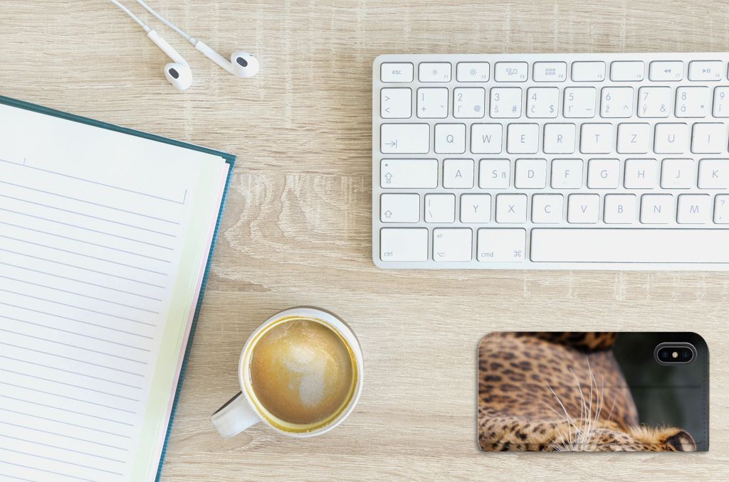Het luipaard wordt ook wel een panter genoemd en is een sluwe kat. De bruingele vacht met een patroon van rozetachtige vlekken geeft een goede schutkleur. Dit zie je ook op een fraaie manier afgebeeld op dit super stoere hoesje. Mensen die indruk willen maken kopen deze stand case met design van het luipaard. Een Apple iPhone X | Xs Hoesje maken is van alle markten thuis. Het is praktisch – vanwege onder meer het opbergvakje en de magnetische sluiting aan de binnenzijde – maar beschermt jouw smartphone tevens beter dan welke case ook. Het luipaard is sterk en behendig en misschien typeert jou dat ook wel. Dan past dit hoesje met luipaard uitstekend bij jou. De houder van TPU aan de binnenzijde is net zo sterk als het luipaard. Jouw telefoon is perfect beschermd. De case heeft tevens een standaard.