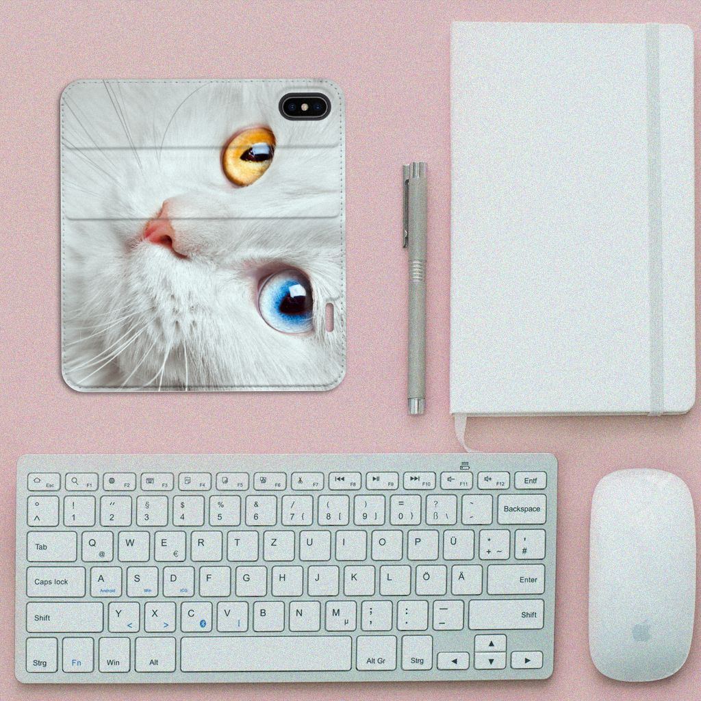Witte katten zijn natuurlijk extra speciaal, vandaar we een exemplaar op een design hoesje hebben gezet. Een witte kat schijnt trouwens ook slechter te kunnen horen dan katten met een andere kleur. Deze witte kat staat op een zeer prominente wijze op een stand case. Deze stand case met witte kat ziet er geweldig uit en is voorzien van verschillende uitsparingen en een speciale standaard. Een Apple iPhone X | Xs Hoesje maken met witte kat beschermt jouw smartphone perfect. Alle zijden van de case zijn bedrukt. Jouw smartphone wordt erg duurzaam met dit design hoesje. Het TPU aan de binnenzijde is zeer flexibel en het pu-leer oogt chique. Verder heeft de case een houder voor bijvoorbeeld je rijbewijs aan de binnenkant.