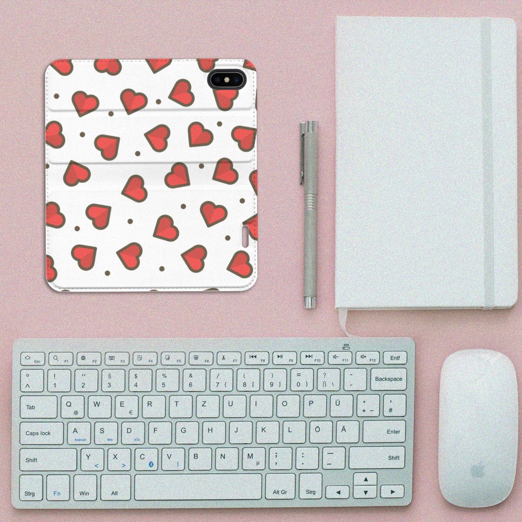 Met deze Apple iPhone X | Xs Hoesje met Magneet met hartjes op een grijs met witte achtergrond maak jij een goede beurt als je dit cadeau geeft aan je vriend of vriendin. Bekroon je liefde voor elkaar met deze hele mooie stand case, die jouw telefoon aan alle zijden beschermt. Dit is echt een prachtige manier om je telefoon te beschermen. Het stand hoesje met design met Hearts is ook nog eens zeer praktisch, mede door het aan de binnenzijde en de standaard. De houder aan de binnenkant is van TPU, dus jouw smartphone kan met dit hoesje met hartjes op een grijs met witte achtergrond geen kant op. Dit is een hoesje om verliefd op te worden. Zonde om dit product aan je voorbij te laten gaan. Waarschijnlijk krijg je er eeuwig spijt van. Voor een habbekrats is dit hoesje met hartjes op een grijs met witte achtergrond te bestellen op onze website.
