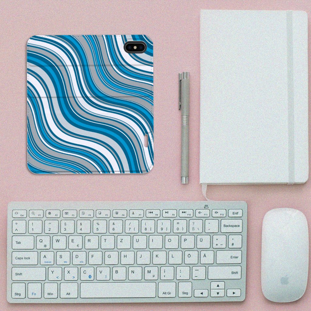 Zeer cool, dit hoesje met vooral blauwe kleuren, die in een golvende beweging jouw telefoon van een mooie uitstraling voorzien. Tijdens een zonnige vakantie aan zee is jouw smartphone perfect beschermd met dit telefoonhoesje. Het design Waves Blue van dit smartphone hoesje doet lichtjes denken aan een lolly, waarmee je een klein kind zeer blij maakt. Jouw Apple iPhone X | Xs zal er ook zeer vrolijk uitzien samen met dit design hoesje. De witte en grijze kleuren staan in mooi contrast met het blauw, waardoor de uitstraling van deze accessoire zeer mooi is. Ook voor andere kleuren kun je natuurlijk uitstekend terecht in ons assortiment. Het design staat op een Hoesje met Magneet. Deze case beschermt jouw telefoon aan alle kanten en beschikt over een 1 opbergvakje en een speciale standaard. Het hoesje wordt afgesloten met een magneet aan de binnenzijde. De houder aan de binnenzijde is van TPU.