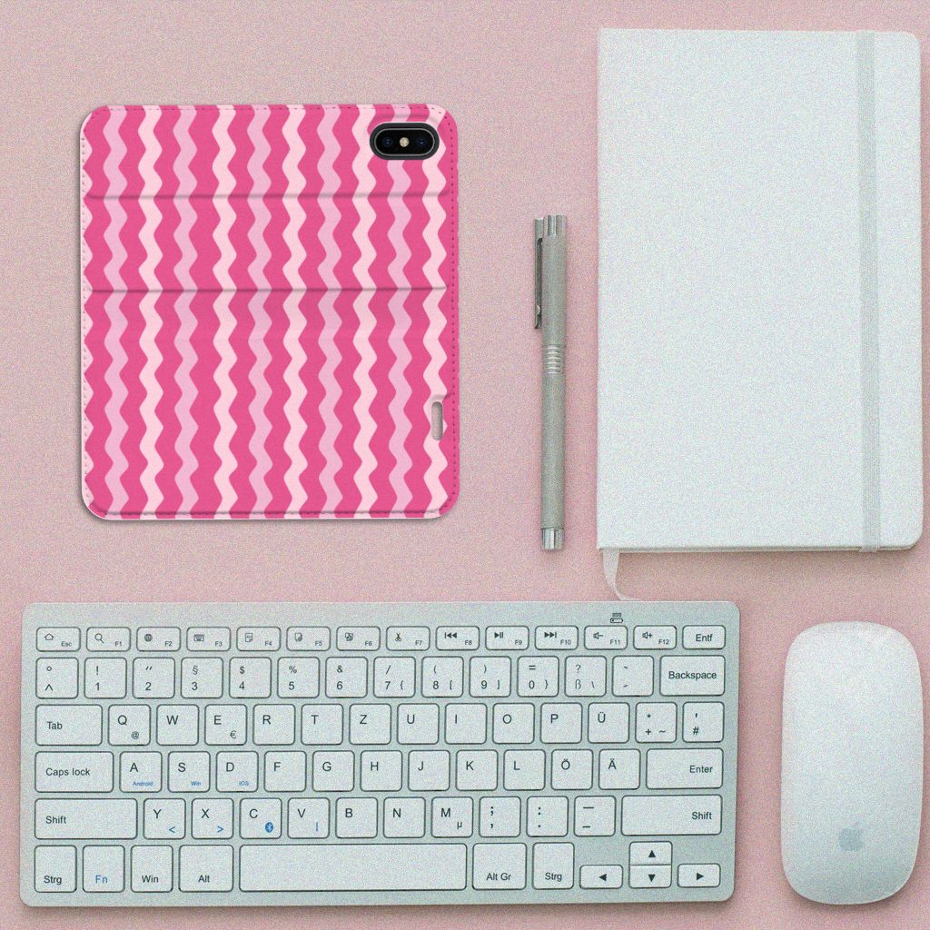 Dit design hoesje met roze golven is speciaal op maat gemaakt voor jouw telefoon. We hebben verschillende kleurstellingen gebruikt in het design, zodat de case er spannend en leuk uitziet. Dit roze hoesje met verschillende soorten golven ziet er opwindend uit. Het Apple iPhone X | Xs Hoesje met Magneet wordt in ons eigen magazijn bedrukt, vandaar dat we de kosten zeer laag kunnen houden. Wij kunnen het duurzame hoesje met Waves Pink zeer snel leveren. Heb jij altijd al een design hoesje met verschillende soorten roze willen hebben? De stand case met roze golven beschermt jouw telefoon aan alle kanten en beschikt over een 1 opbergvakje en een speciale standaard. Het roze hoesje wordt afgesloten met een magneet aan de binnenzijde. De houder aan de binnenzijde van de case in verschillende soorten roze is van het flexibele TPU. Alle zijden van de roze stand case worden bedrukt.