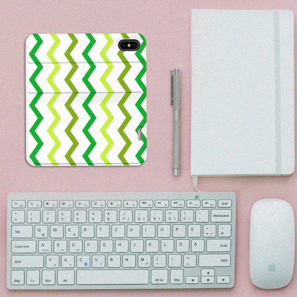 Dit zigzag groen design hoesje is speciaal ontworpen voor jouw telefoon. We hebben bewust verschillende stijlen groen gebruikt, zodat er voldoende sprake is van variatie. Dit groene hoesje ziet er super strak uit. Dat kan ook niet anders, als je weet dat onze designer zijn creativiteit heeft gebruikt. Hij schudt voortdurend nieuwe designs uit zijn mouw en dit zigzag groene hoesje is een van zijn fraaiste creaties. Een heel tof Apple iPhone X | Xs Hoesje met Magneet, al zeggen we het zelf. Valt dit Zigzag Groen design hoesje goed bij jou? Bestel het dan vandaag nog en je hebt het morgen in huis. Het design staat op een stand case. Deze case beschermt jouw telefoon aan alle kanten en beschikt over een 1 opbergvakje en een speciale standaard. Het hoesje wordt afgesloten met een magneet aan de binnenzijde. De houder aan de binnenzijde is van TPU. Alle zijden van de stand case worden bedrukt.