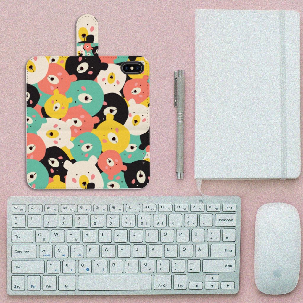 Op dit hoesje vind je een bereschattig ontwerp! Vergeef ons de woordgrap, maar hoe moeten we dit lieve ontwerp anders omschrijven? Op dit knuffelige ontwerp zie je leuke, getekende beertjes in vrolijke kleuren als geel, blauw en roze. Dankzij de contrasterende witte en zwarte beertjes vallen de felle kleurtjes nog meer op. Al met al is dit Leuk Hoesje voor de Apple iPhone X | Xs een perfect hoesje voor de knuffelberen onder ons. Een boekhoesje is perfect voor iedereen die niet graag allerlei losse dingen meesleept. Met dit hoesje heb je namelijk je belangrijkste bezittingen bij de hand. Binnenin zit namelijk een pasjeshouder voor twee pasjes. Daar bewaar je je belangrijkste (bank)passen in of je briefgeld. Super handig en heel erg mooi. En bovenal is je telefoon met dit bears-ontwerp goed beschermd tegen krassen en beschadigingen.