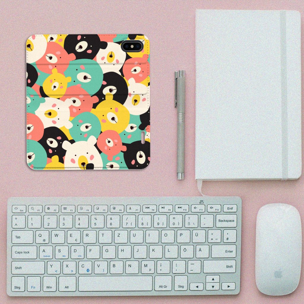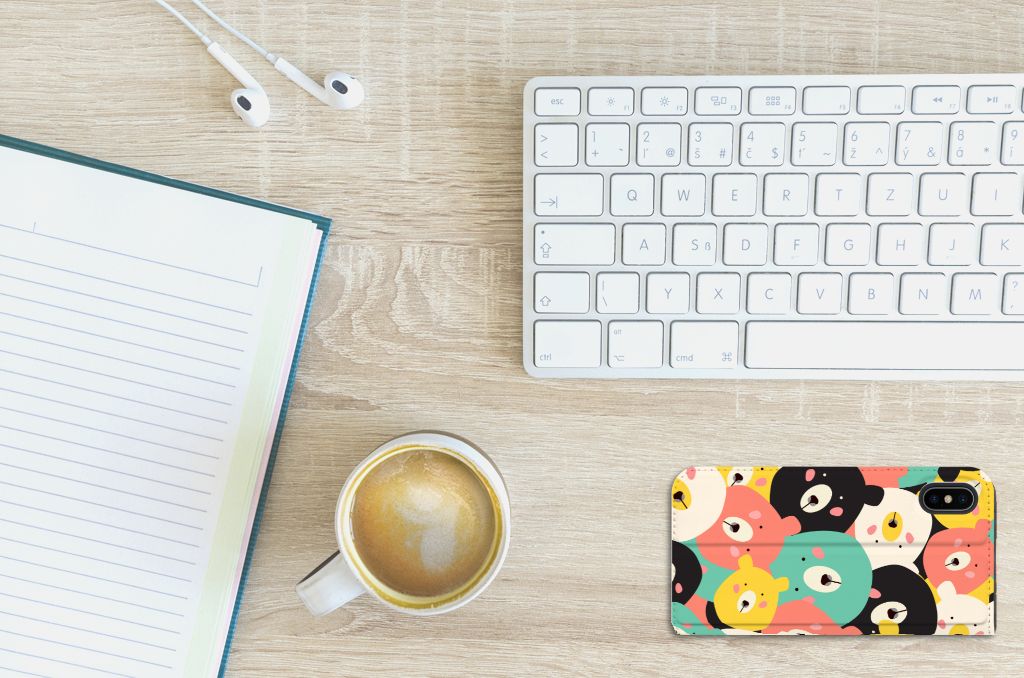 Op dit hoesje vind je een bereschattig ontwerp! Vergeef ons de woordgrap, maar hoe moeten we dit lieve ontwerp anders omschrijven? Op dit knuffelige ontwerp zie je leuke, getekende beertjes in vrolijke kleuren als geel, blauw en roze. Dankzij de contrasterende witte en zwarte beertjes vallen de felle kleurtjes nog meer op. Al met al is dit Magnet Case voor de Apple iPhone X | Xs een perfect hoesje voor de knuffelberen onder ons. Dit populaire smartphonehoesje met het Bears-design heeft één vakje voor een pasje of briefgeld en is aan alle zijden bedrukt. Met de standcase zet je je telefoon gemakkelijk neer, zodat je je handen vrij hebt als je bijvoorbeeld een video wilt kijken. De binnenkant van de standcase is van grijs PU-leer. Dat is fijn, omdat je daardoor niet snel vlekken ziet op je hoesje.