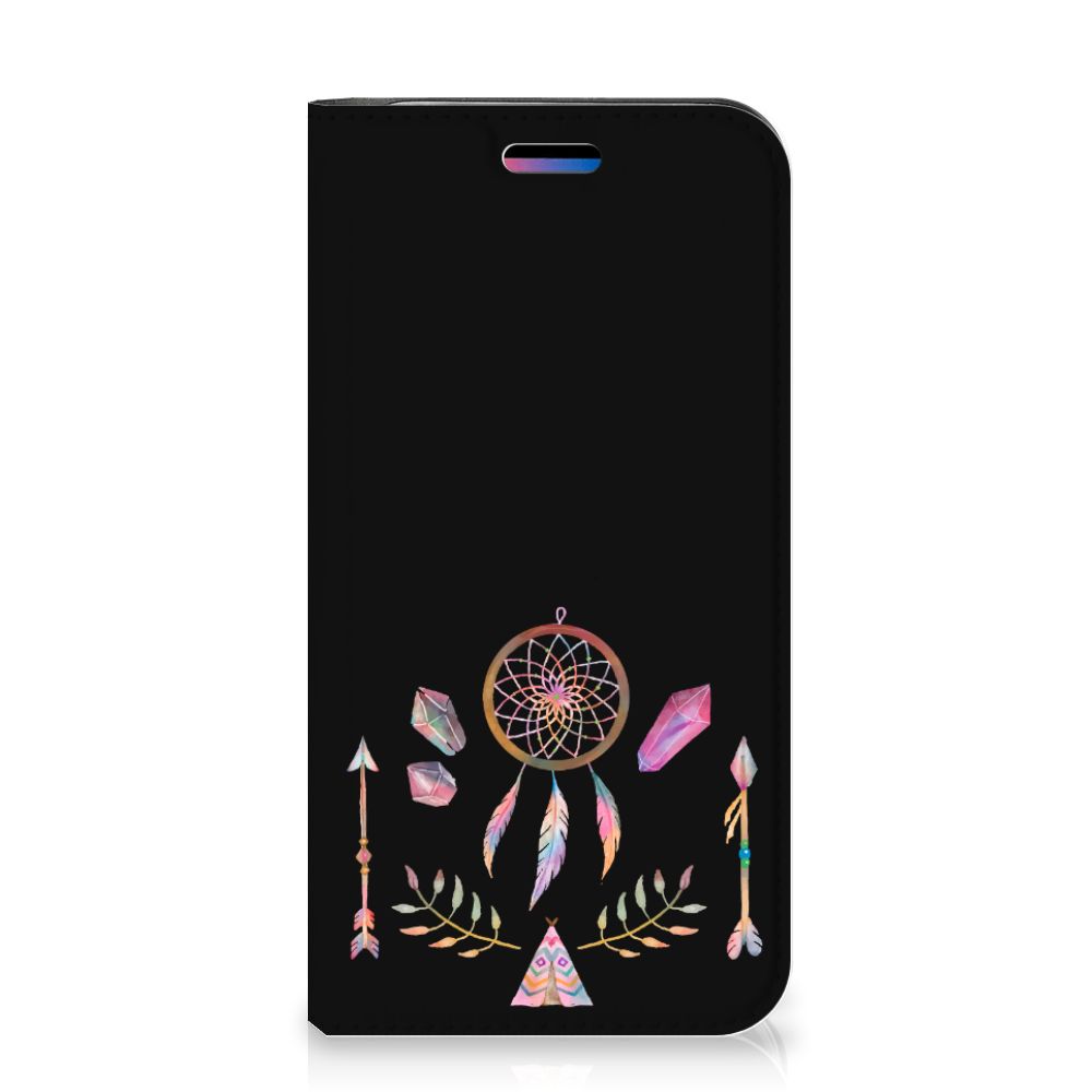 Een dromenvanger werd lang geleden al door een indianenvolk in Noord-Amerika gebruikt om nare dromen te weren. Nu nog hangen mensen over de hele wereld dromenvangers boven hun bed. Maar ook op een telefoonhoesje staat zo’n boho dreamcatcher heel mooi. Dit mooie design dat bestaat uit een tipi, pijlen en dromenvanger heeft veel verschillende prachtige kleuren. Maar omdat het ontwerp minimalistisch en klein is, is het design toch subtiel te noemen. Dit ontwerp staat op een Magnet Case voor je Apple iPhone X | Xs. Dit populaire smartphonehoesje heeft één vakje voor een pasje of briefgeld en is aan alle zijden bedrukt. Met de standcase zet je je telefoon gemakkelijk neer, zodat je je handen vrij hebt als je bijvoorbeeld een video wilt kijken. De binnenkant van de standcase is van grijs PU-leer. Dat is fijn, omdat je daardoor niet snel vlekken ziet op je hoesje.