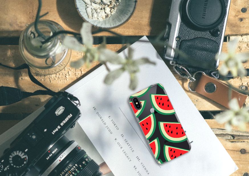 Watermeloenen zijn uitstekende dorstlessers, misschien dat je daarom juist in de zomermaanden extra enthousiast raakt van dit design hoesje Watermelons. Jij blijft gezond als je zo nu en dan een watermeloen neemt, jouw smartphone blijft in tact als je er deze Apple iPhone X | Xs Siliconen Case omheen doet. Deze tpu case wordt alleen aan de bovenkant bedrukt met watermeloenen is zeer flexibel. De randen van het hoesje blijven transparant. Je kunt ook kiezen voor andere soorten fruit op je hoesje. Kijk maar eens naar onze andere design hoesjes op onze website.