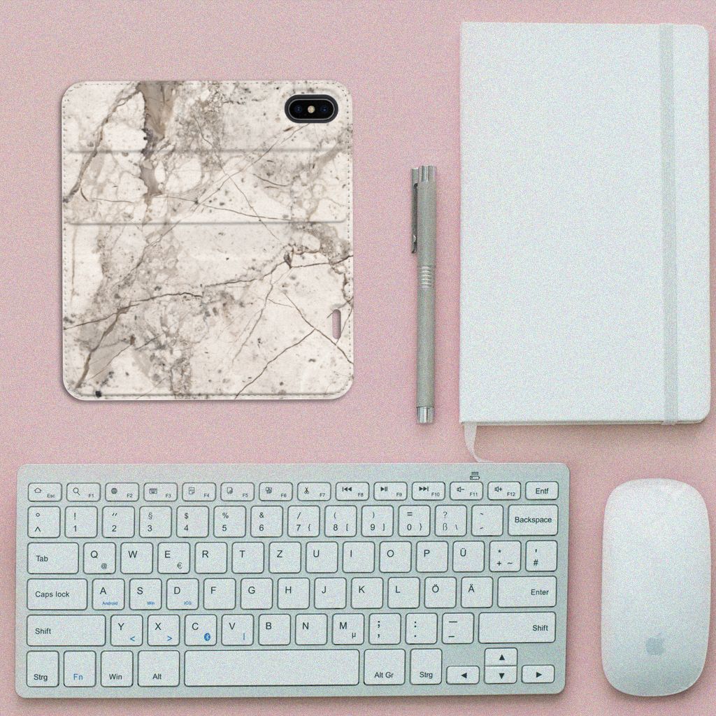 Dit design hoesje met Marmer Beige is voor de artistieke personen onder ons. De Grieken en Romeinen wisten het steen al te waarderen door het als bouw- en bekledingsmateriaal toe te passen. Naast het witte Carrara marmer met haar zacht grijze geaderde belijning zijn de diverse marmersoorten in een ruim kleurenpallet te krijgen. We hebben verschillende kleuren op design hoesjes gezet, zoals in dit geval beige marmer. Dit is een Apple iPhone X | Xs Standcase met marmer in beige kleur. Het marmer wordt bedrukt op alle zijden van een stand case, die beschikt over 1 vakje voor een pasje en toebehoren en een magnetische sluiting aan de binnenkant. Verder heeft de case een houder van TPU. De rijkheid aan kleuren en varianties in afwerking geeft designers de vrijheid om met marmer hele mooie architectonische projecten te realiseren. Wij hebben onze designer ook veel vrijheid gegeven. Het resultaat zie je terug in deze stand case met beige marmer, dat de ideale bescherming voor jouw smartphone biedt.