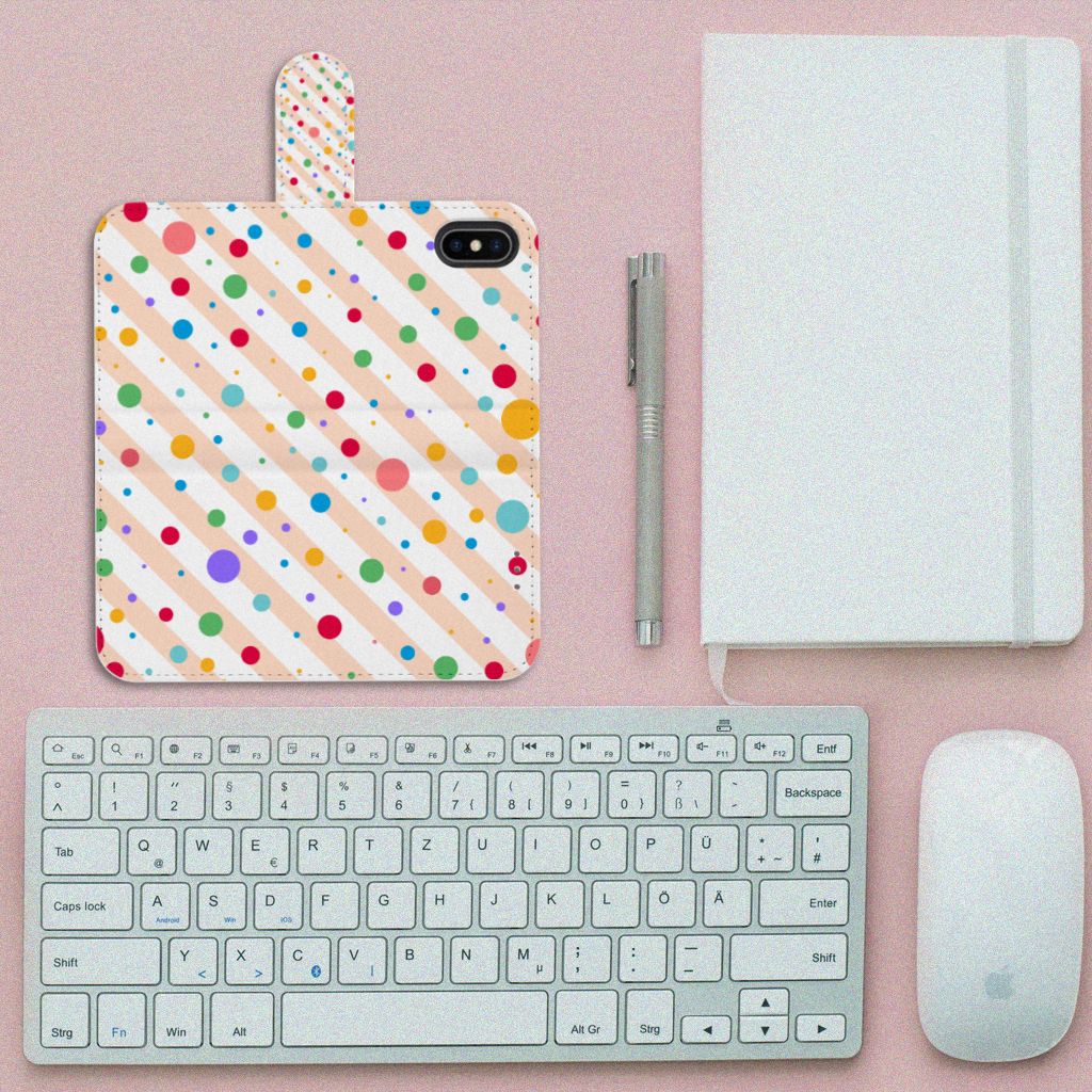 Een Apple iPhone X | Xs Telefoon Hoesje met verschillende kleuren stippen is een schitterende bescherming van jouw smartphone. Het boekhoesje met het design Dots in alle kleuren van de regenboog komt voor jou als geroepen. Maak je geen gebruik van dit zeer mooie hoesje, dan kan het met jouw smartphone een beetje beroerd aflopen. Dit mooie boekhoesje met verschillende kleuren stippen zorgt voor een volledige bescherming van je smartphone en wordt aan alle zijden bedrukt. Sommige stippen staan ook op het magnetische lipje aan de buitenzijde. Verder is de houder aan de binnenzijde van TPU. Jouw telefoon is dus zeer goed opgeborgen en kan geen kant op. Met een hoesje met stippen in verschillende kleuren op alle zijden blijft jouw telefoon volledig in tact. Heb je liever een boekhoesje met stippen in andere opvallende kleuren? Ontwerp dan zelf case met je eigen foto’s en teksten!