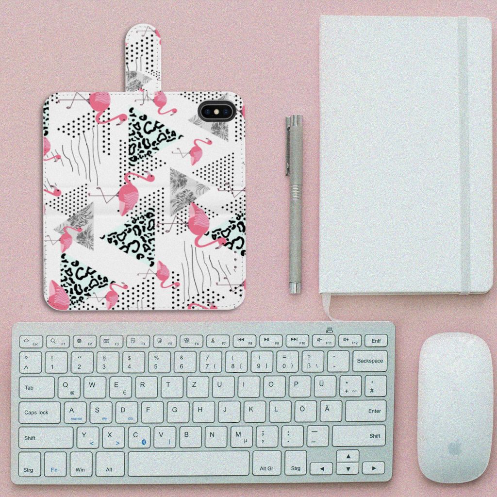 Apple iPhone X | Xs Telefoonhoesje met magnetische lipje als sluiting Flamingo Triangle