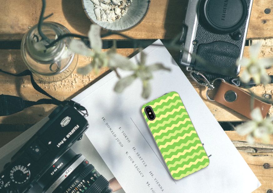 Dit groene design hoesje met groene golven is speciaal ontworpen voor jouw telefoon. We hebben een vleugje geel toegevoegd, zodat er sprake is van variatie. Dit Waves Green hoesje ziet er flitsend uit. Dat kan ook niet anders, als je weet dat we veel energie steken in het bedenken van originele designs. Een heel strak Apple iPhone X | Xs TPU bumper, met zeer veel opties. Past dit groene design hoesje met golven goed bij jou? Bestel het dan vandaag nog, tegen zeer lage kosten. Het design staat op een TPU case. Dit hoesje wordt alleen aan de bovenkant bedrukt en is zeer flexibel. De randen van het hoesje met groene golven blijven transparant en worden niet bedrukt. Met dit hoesje past jouw telefoon altijd in je broekzak.