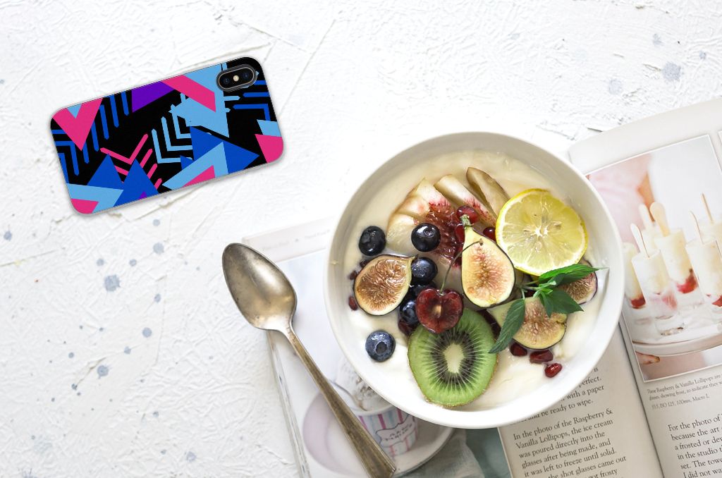 Dit fraaie hoesje met het design Funky Triangle is alles behalve eenvoudig en sober. Dat komt goed uit, want je hebt natuurlijk ook geen doorsnee telefoon gekocht. Mocht je dat wel hebben gedaan, dan wordt hij meteen speciaal als je een Apple iPhone X | Xs TPU Hoesje koopt voor een spotprijsje. Een ding is zeker: opvallen ga je beslist met dit hoesje met paarse, roze en blauwe driehoeken. Jij zult in je element zijn met dit design hoesje met paarse, roze en blauwe driehoeken, omdat het er schitterend uitziet en jouw telefoon zeer goed beschermt. Het smartphonehoesje beschermt jouw telefoon vooral aan de zijkanten en achterkant en wordt alleen aan de bovenzijde bedrukt met paarse, roze en blauwe driehoeken. De zijkanten blijven doorzichtig. De paarse, roze en blauwe driehoeken maken de case helemaal af.