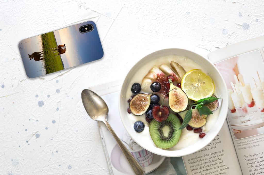 Het levert een idyllisch plaatje op, dit hoesje met een koe en ondergaande zon op de achtergrond. Door een koe buiten te laten lopen en grazen, hebben ze minder kans om ziek te worden. De Koe graast het liefst met soortgenoten, al zijn deze een stukje van de koe op de case verwijderd. Dit levert ook een mooi plaatje op, zoals je kunt zien op dit design hoesje. Dit tpu hoesje met koeien ziet er flexibel uit en is voorzien van alle uitsparingen. Een Apple iPhone X | Xs TPU Hoesje met koeien beschermt jouw smartphone vooral aan de achterkant en zijkanten. De zijkanten blijven transparant, de rest van het hoesje is bedrukt. Koeien herkauwen het liefst liggend, behalve wanneer het regent. Zo goed als grazen voelt voor koeien, zo duurzaam zal jouw smartphone blijven met dit design hoesje. Het TPU is schokabsorberend en niet te breken. De TPU case past altijd in je broekzak.