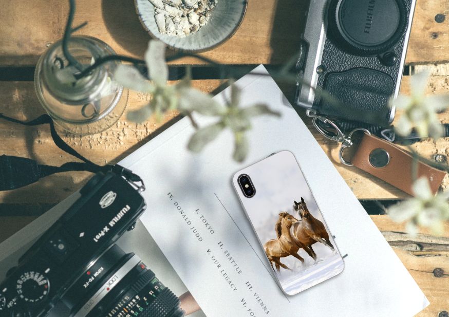 Voor de paardenliefhebbers onder ons hebben we onze collectie uitgebreid met dit design hoesje met print van paarden. Vroeger hield de mens vooral werkpaarden, inmiddels hebben we vriendschap gesloten met het paard. Vandaar dat het ook een favoriet dier is op onze smartphonehoesjes, zoals deze tpu case. Een TPU Hoesje voor de Apple iPhone X | Xs met Paarden is niet alleen super mooi en chique, maar ook nog eens zeer flexibel. Verder is de case schokabsorberend en heeft het opstaande randen. Zie je liever je eigen paard terug op een hoesje. Dat kan! Door zelf een uniek hoesje te ontwerpen, met eigen foto’s en teksten. De TPU case wordt aan de bovenzijde bedrukt, de zijkanten blijven transparant.