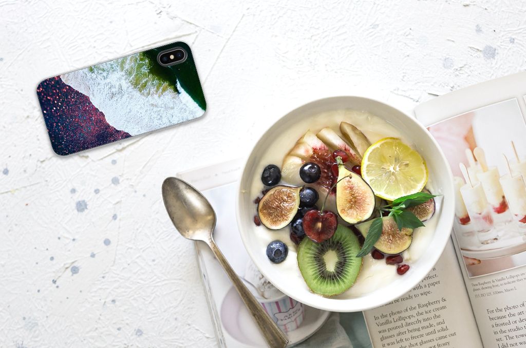 Ben je een beetje een artistiek type? Dan kan je wel eens enthousiast raken van dit smartphonehoesje. ‘Sea in Space’, zo noemt onze grafisch designer dit ontwerp. Dus mensen die van zon en zee kunnen genieten en tegelijkertijd van science fiction houden zullen deze case ongetwijfeld mooi vinden. Een beetje glitter en glamour zou je met een beetje fantasie ook nog wel kunnen ontdekken in dit design hoesje. Dit artistieke kunstwerkje is voor heel weinig geld te bestellen op onze website. Je krijgt er maximale bescherming van je Apple iPhone X | Xs voor terug. Het design staat op een TPU Hoesje. Dit hoesje wordt alleen aan de bovenkant bedrukt en is zeer flexibel. De randen van het hoesje blijven transparant en worden niet bedrukt.