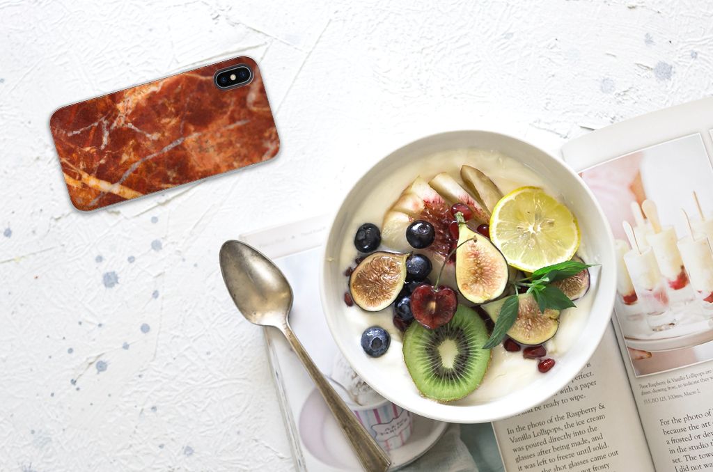 Dit design hoesje met Marmer Bruin is voor de artistieke personen onder ons. De Grieken en Romeinen wisten het al te waarderen door het als bouw- en bekledingsmateriaal toe te passen. Naast het witte Carrara marmer met haar zacht grijze geaderde belijning zijn de diverse soorten in een ruim kleurenpallet te krijgen. We hebben verschillende kleuren op design hoesjes gezet, zoals in dit geval bruin marmer. Dit is een Apple iPhone X | Xs TPU Siliconen Hoesje met marmer in bruine kleur. Het marmer wordt bedrukt op de voorkant van een tpu case, die beschikt over opstaande randen aan de voorkant en heel goed combineert met een screenprotector. De rijkheid aan kleuren en varianties in afwerking geeft ontwerpers de vrijheid om met marmer hele mooie architectonische projecten te realiseren. Wij hebben onze designer ook veel vrijheid gegeven. Het resultaat zie je terug in deze tpu case met bruin marmer, die jouw smartphone goed beschermt. De zijkanten van de case worden niet bedrukt met marmer.