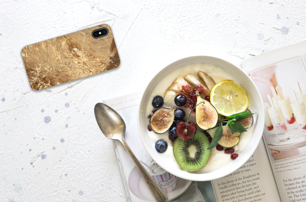 Dit design hoesje met Marmer in lichtbruine kleur is voor de artistiekelingen onder ons. De Grieken en Romeinen wisten het marmer al te waarderen door het in de bouw toe te passen. Naast het witte marmer zijn de diverse soorten marmer in een gevarieerde kleurensamenstelling te krijgen. We hebben verschillende mooie kleuren op design hoesjes gezet, zoals in dit geval het lichtbruine marmer. Dit is een Apple iPhone X | Xs TPU Siliconen Hoesje met marmer in lichtbruine kleur. Het marmer wordt bedrukt op de voorkant van een tpu case, die beschikt over opstaande randen aan de voorkant en heel goed combineert met een screenprotector van glas of van folie. Door de rijkdom aan kleuren en varianties in afwerking kunnen ontwerpers met marmer schitterende architectonische projecten realiseren. Wij hebben hetzelfde gedaan en onze ontwerper veel vrijheid geboden. Het resultaat zie je terug in deze tpu case met lichtbruin marmer, die jouw smartphone goed beschermt. De zijkanten van de case worden niet bedrukt met het lichtbruine marmer.