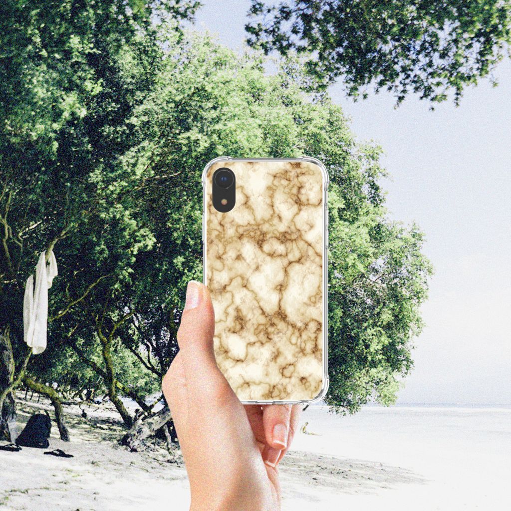 Ben je op zoek naar een uniek telefoonhoesje voor je Apple iPhone Xr? Dan ben je bij B2C Telecom aan het juiste adres! Speciaal voor jou hebben we dit prachtige Marmer Goud design in onze collectie hoesjes opgenomen. Het design wordt bedrukt op een Anti-Shock Hoesje en is gemaakt van flexibel rubber. Het hoesje is perfect voor de actieve smartphonegebruiker door de opstaande randen/hoeken. Denk aan mensen die veel sporten, reizen of wandelen en net iets meer zekerheid willen als het op hun geliefde telefoon aankomt. Het design wordt alleen aan de bovenkant van het hoesje bedrukt en de randen blijven transparant. Aan de zijkanten zijn uitsparingen gemaakt waardoor je met gemak alle knoppen en poorten kunt bedienen. Wij adviseren om dit hoesje in combinatie met een screenprotector te gebruiken voor een langere levensduur van je telefoon. Wil je dit hoesje nog iets extra's geven? Voeg dan gratis je naam of een quote toe! Is dit design hoesje toch niet helemaal wat je zocht? Ontwerp dan zelf een hoesje in ons ontwerpprogramma.
