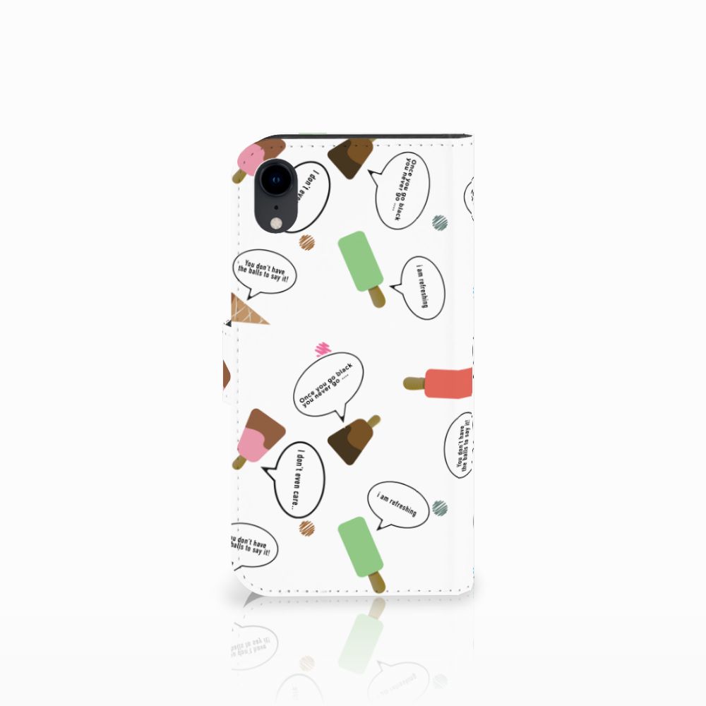 Van dit vrolijke Apple iPhone Xr Book Cover met daarop verschillende soorten ijsjes met tekstwolkjes krijg je sowieso een vrij en zomers gevoel. De zomer komt naar je toe met deze print van ijsjes met tekstwolkjes. Ben je op het strand, dan ontbreekt een lekker ijsje natuurlijk niet. Net zoals je je smartphone bij de hand hebt, met daaromheen een design hoesje met bijzondere ijsjes en tekstwolkjes. Jouw telefoon kan dan de bescherming in de vorm van een boekhoesje met ijsjes zeer goed gebruiken. Alle zijden van dit hoesje worden bedrukt met ijsjes en tekstwolkjes. De case heeft een lipje aan de buitenzijde voor het afsluiten van de telefoon en de houder aan de binnenzijde is van TPU. Onder alle weersomstandigheden zal deze case met verschillende opbergvakjes perfect functioneren, ook op het strand met een ijsje in je hand.